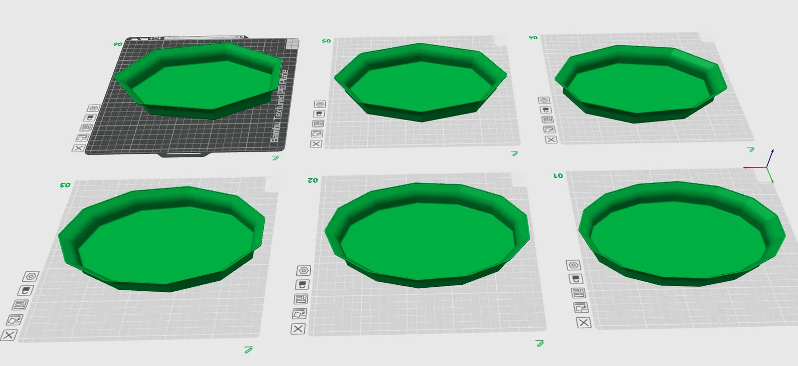 Mấy cái khay hay cái tô gì đó, anh chị em thích cái nào thì lấy nha. Số trên file stl (bowl_x) là số cạnh đó. Anh chị em cứ scale lên xuống tùy ý ha.