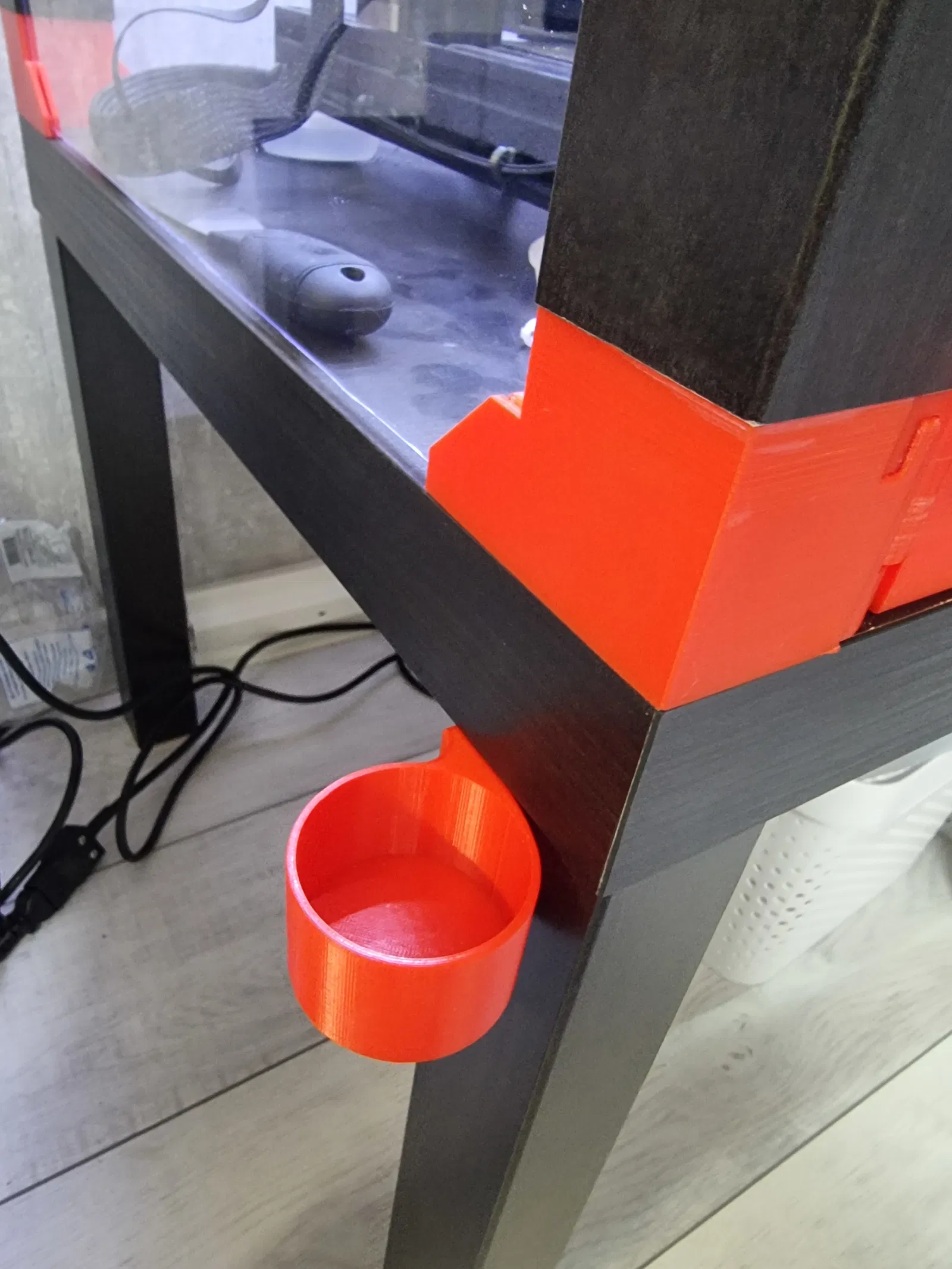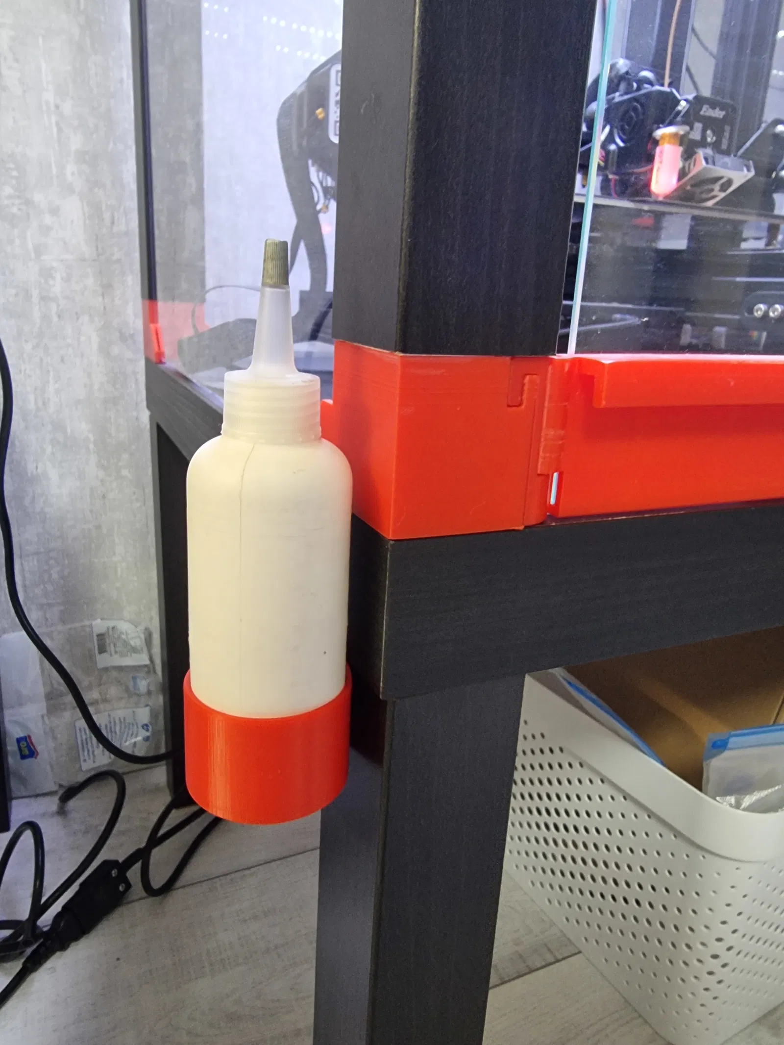 Kệ giữ chai tùy chỉnh cho bàn/khung enclosure Ikea Lack. Có thể chỉnh kích thước chai theo ý muốn. File STL có sẵn kích thước 47.5mm, rất hợp để đựng cồn vệ sinh bàn in.