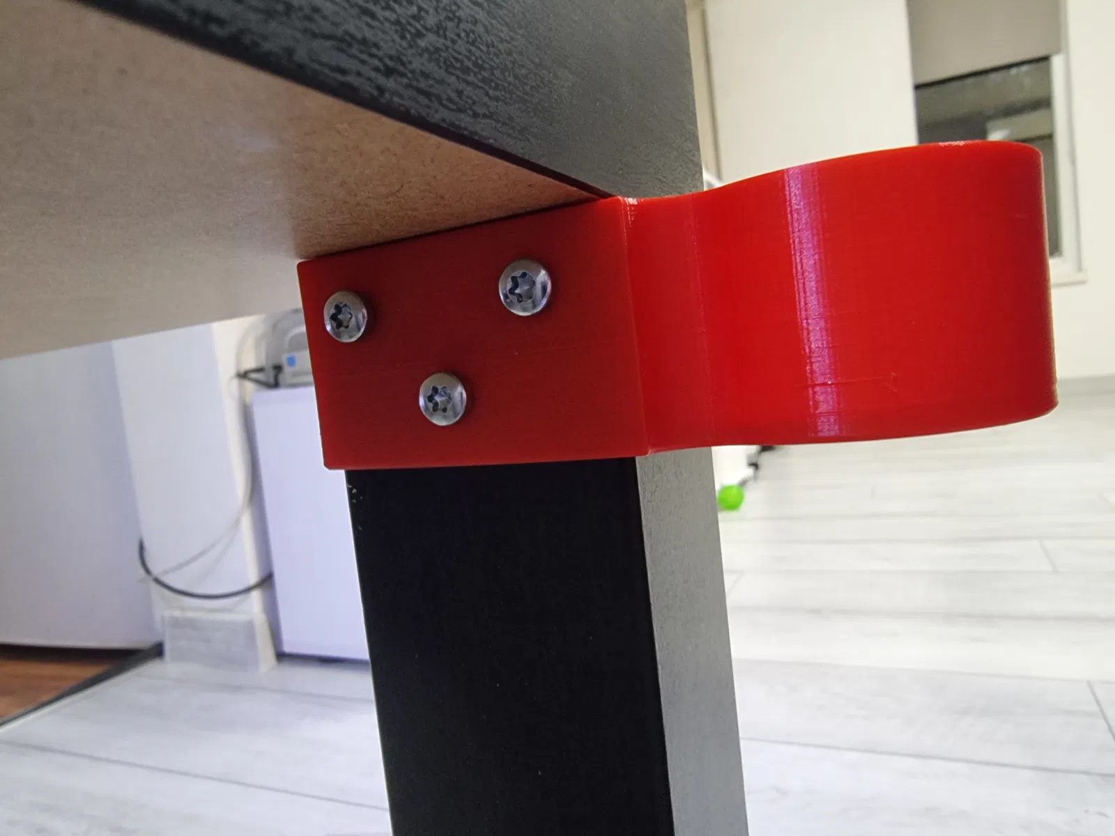 Tui tạo ra một cái đế giữ chai đơn giản cho bàn Ikea Lack. Cái đế này gắn vô chân bàn bằng 3 con ốc (tui xài loại 4x10mm nha).