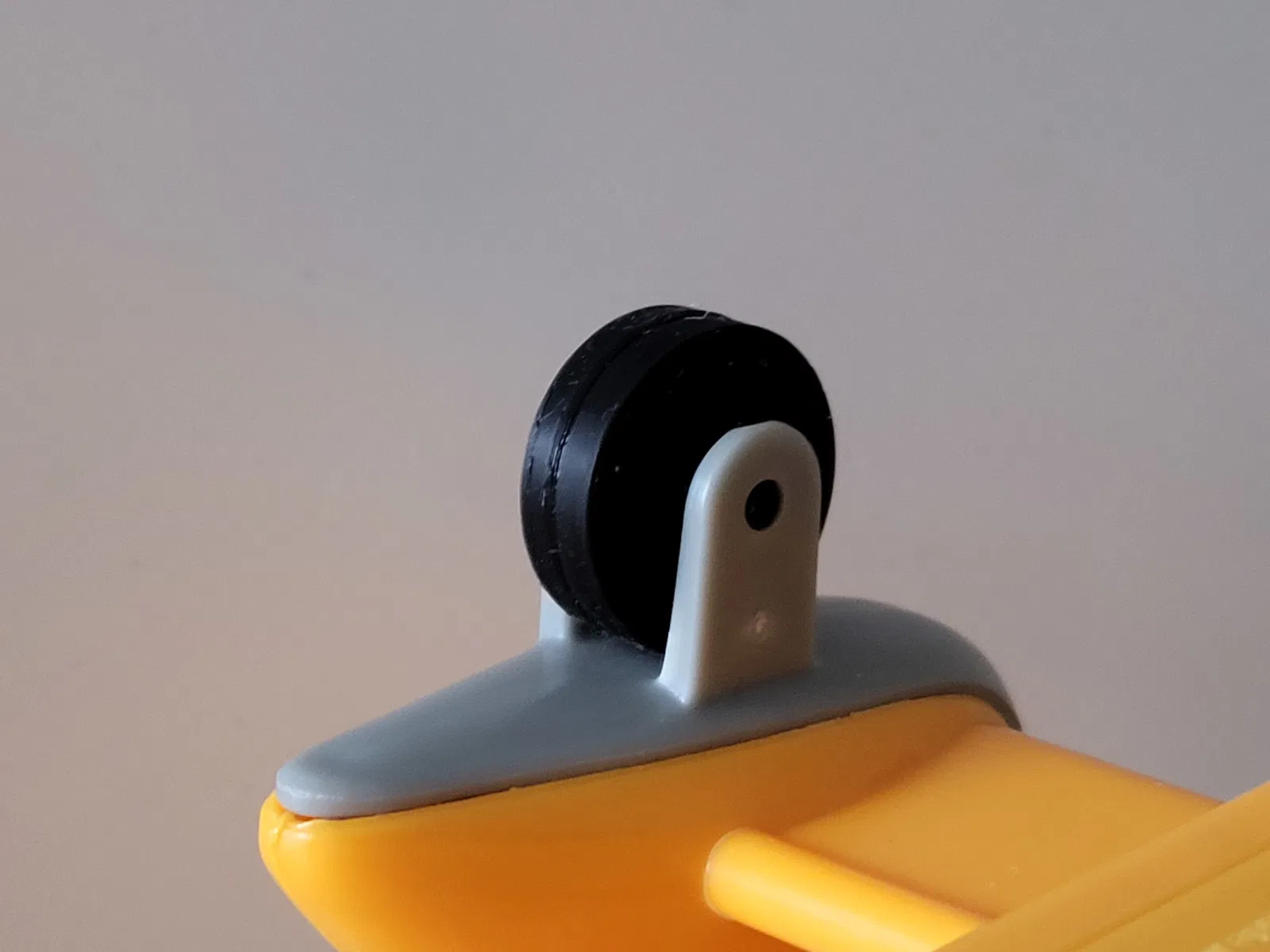 Chiếc trực thăng đồ chơi Wallaby 2 của mấy đứa nhỏ nhà tui bị mất một cái bánh trước, nên tui mới thiết kế cái bánh khác để thay vô. Tui cắt đôi nó ra trong phần mềm slicer rồi dán lại. In đứng có gắn support thì cũng chạy ngon lành, nhưng tui hổng thích mấy cái "mặt phẳng" nó tạo ra...