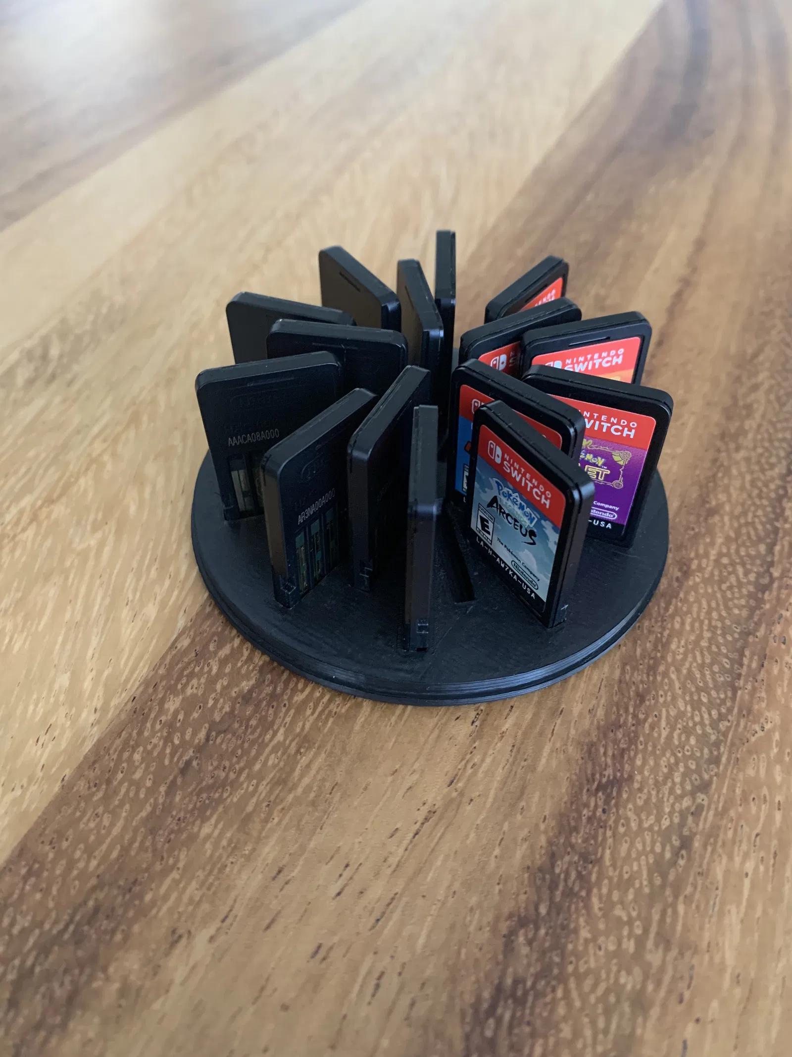 Hộp đựng băng game cho Nintendo Switch. Có thể đựng tới 20 băng game, với độ khít vừa đủ để chúng không bị rơi ra. Trong trường hợp của tôi thì không cần nắp đâu vì băng game nó nằm im rồi. Để in phần nắp, tôi khuyên dùng đầu phun dưới 0.04mm vì thành nắp chỉ dày 0.8mm thôi.