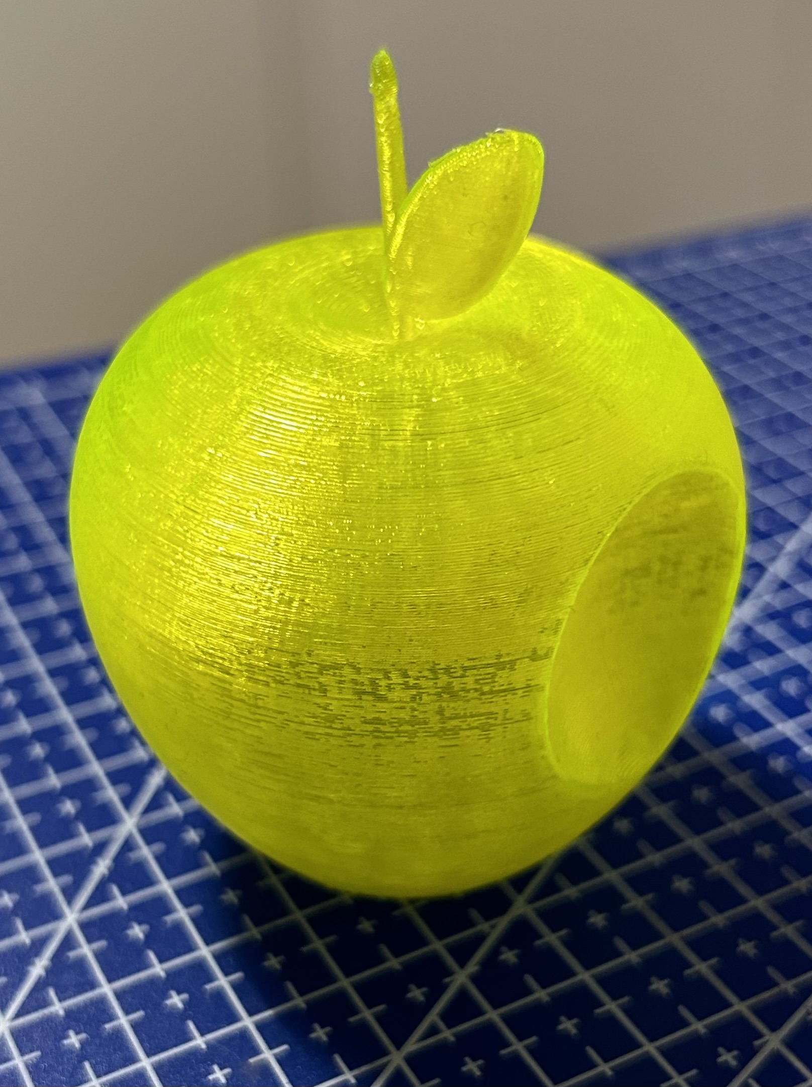 Tôi đã in nó ở tỉ lệ khoảng 41% so với bản gốc, có lẽ là nhỏ hơn một quả táo thật. Vì vậy, tôi đề xuất in ở khoảng 50%.