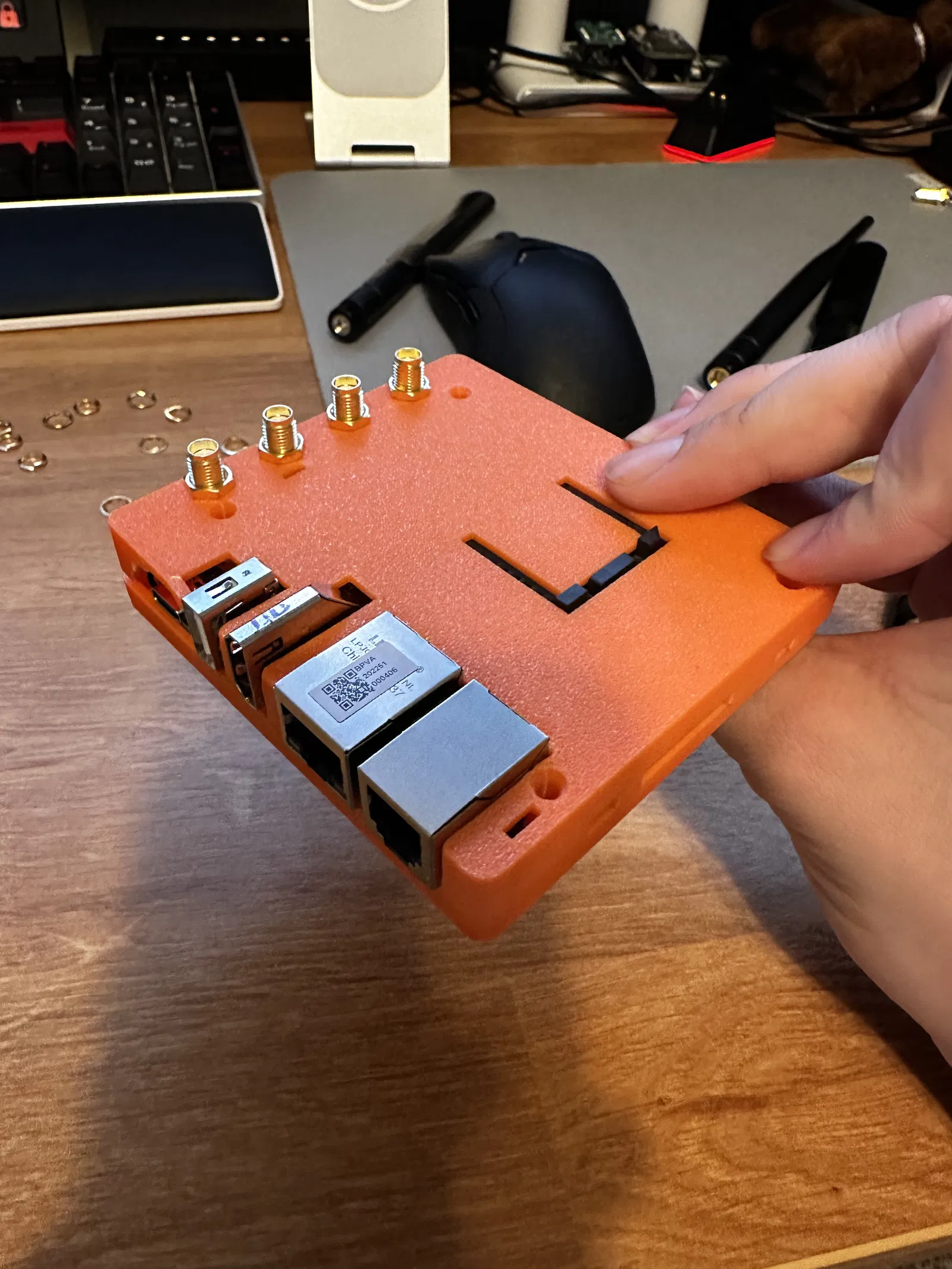 Cái vỏ BeaglePlay này cho phép bạn gắn 2 anten 2.4Ghz bên trong, rất tiện cho HomeAssistant với Zigbee mà không cần anten ngoài. Nếu muốn thì bạn cũng có thể gắn anten ngoài với dây nối u.FL sang SMA. Chỉ cần 4 con ốc M3 là đủ xài, không cần phụ kiện gì khác.