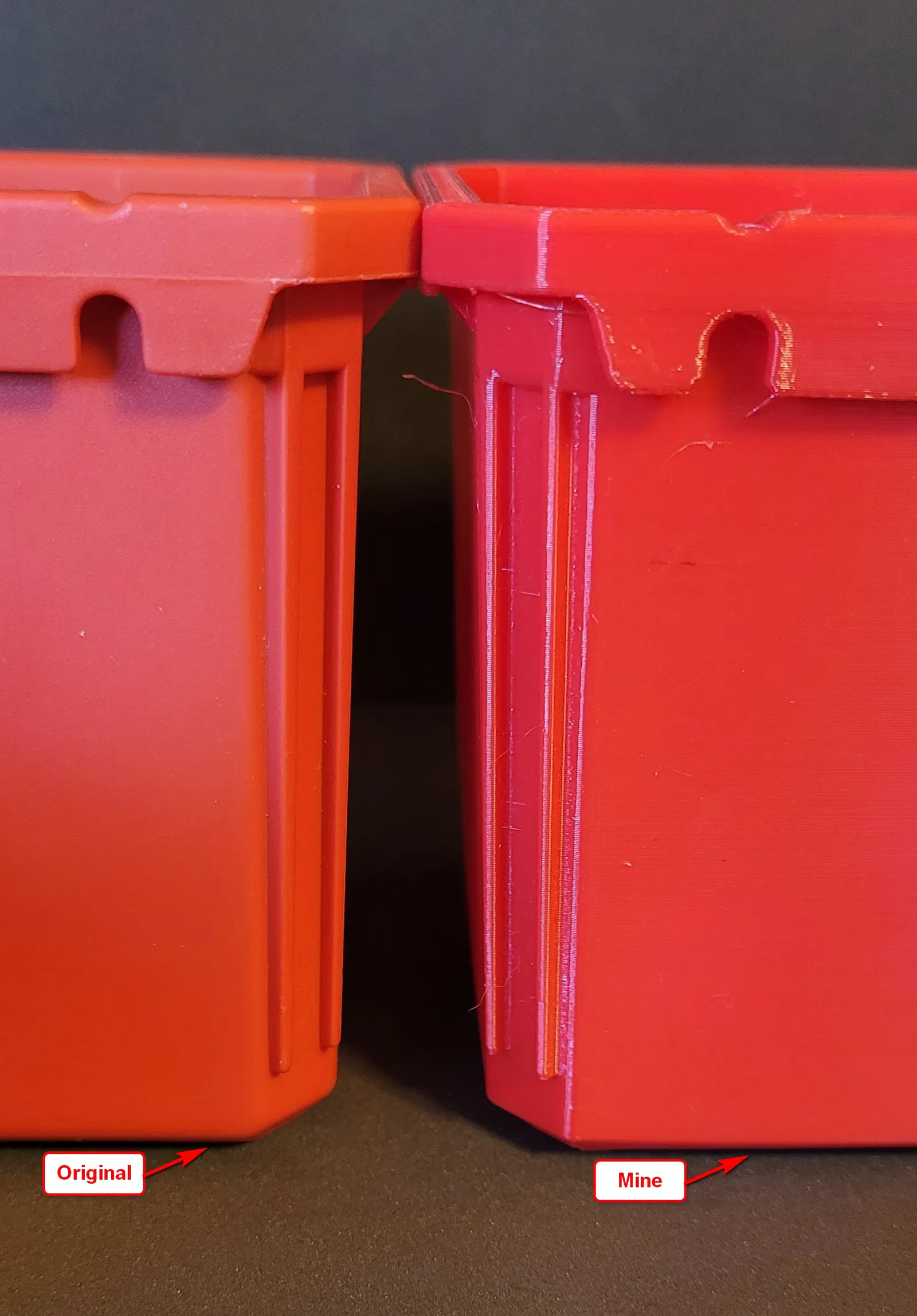 Vì vậy, đây là một mẫu khay tương thích với Milwaukee Packout Organizer có chức năng tương đương với bản gốc. Tôi đã in mẫu này bằng PLA và PETG. PLA cứng hơn và dễ dàng loại bỏ các bộ phận hỗ trợ hữu cơ – chúng chỉ bong ra ngay lập tức. PETG thì hơi mềm hơn một chút, và tôi nghĩ nó sẽ chịu được va đập tốt hơn, nhưng các bộ phận hỗ trợ hữu cơ lại có xu hướng bám dính nhiều hơn, và tôi phải dùng một cái que nha khoa để lấy chúng ra khỏi gờ. Nhưng theo ý kiến của tôi thì việc in bằng PETG cũng rất đáng giá.