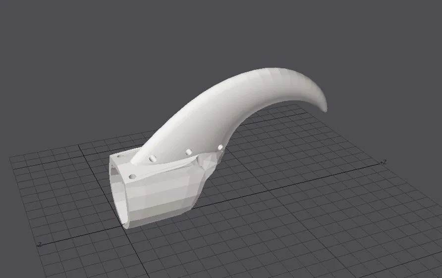 Tao làm cái mẫu móng vuốt này cho cái fursuit mèo nè. Mấy cái lỗ là để khâu cái móng vô găng tay đó. Nhớ chỉnh kích cỡ cho từng ngón tay trước khi in 3D nha. In bằng vật liệu dẻo như TPU á.
