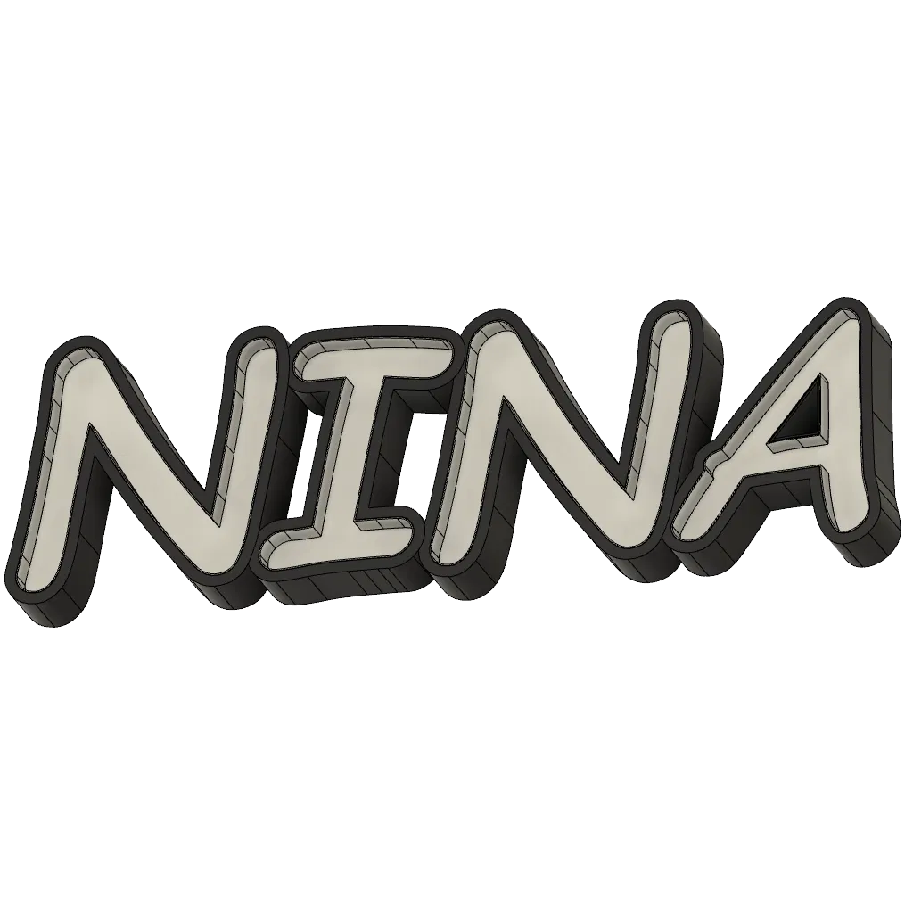 Bảng tên LED tùy chỉnh cho bé tên Nina. Kích thước in tối thiểu 220x220mm. Các bộ phận chỉ cần dán lại với nhau sau khi in. Hoàn hảo để trang trí phòng trẻ em.