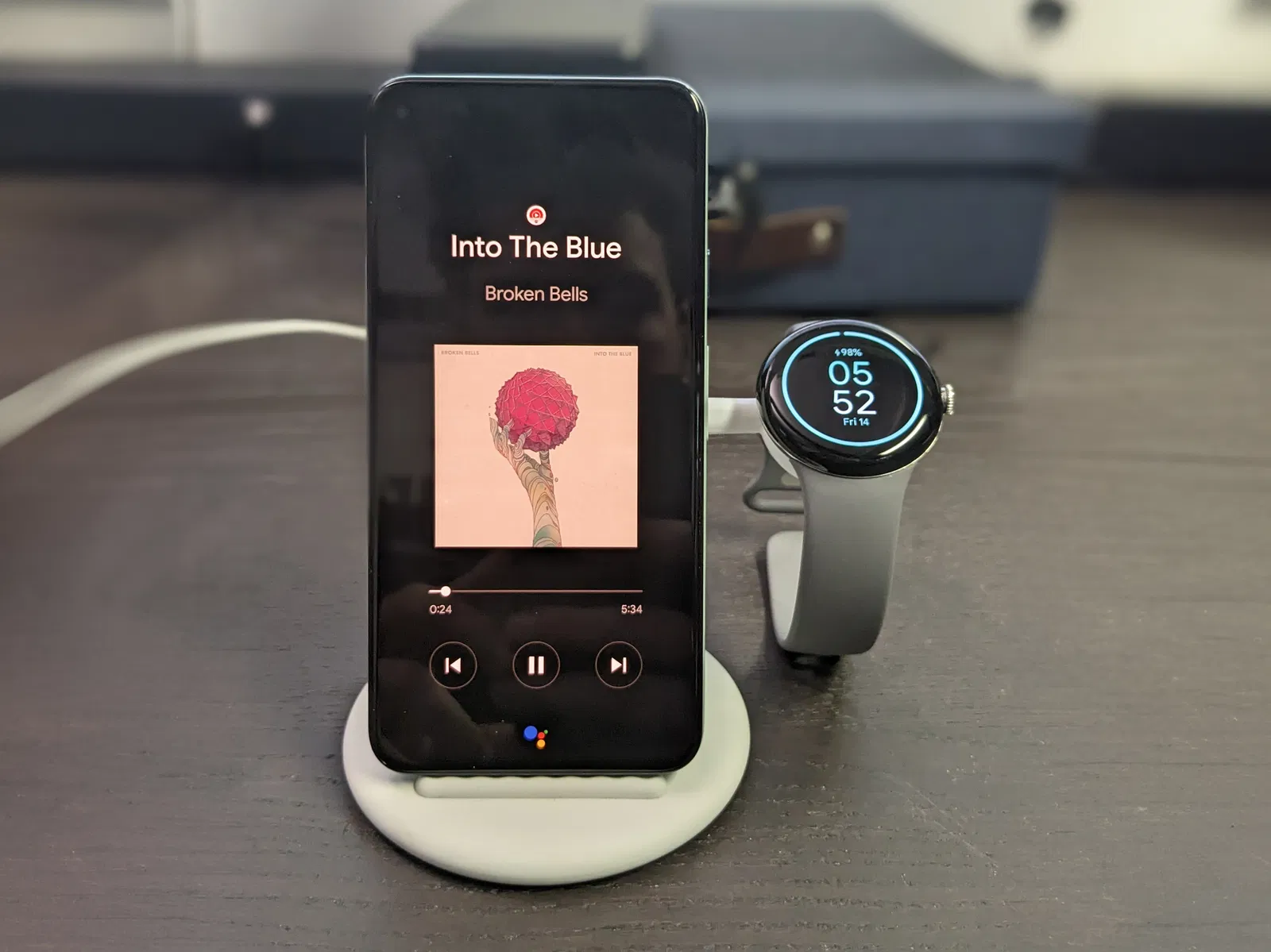 Đây là giá đỡ sạc Pixel Watch 2 mảnh, gắn vào Pixel Stand thế hệ đầu tiên.
