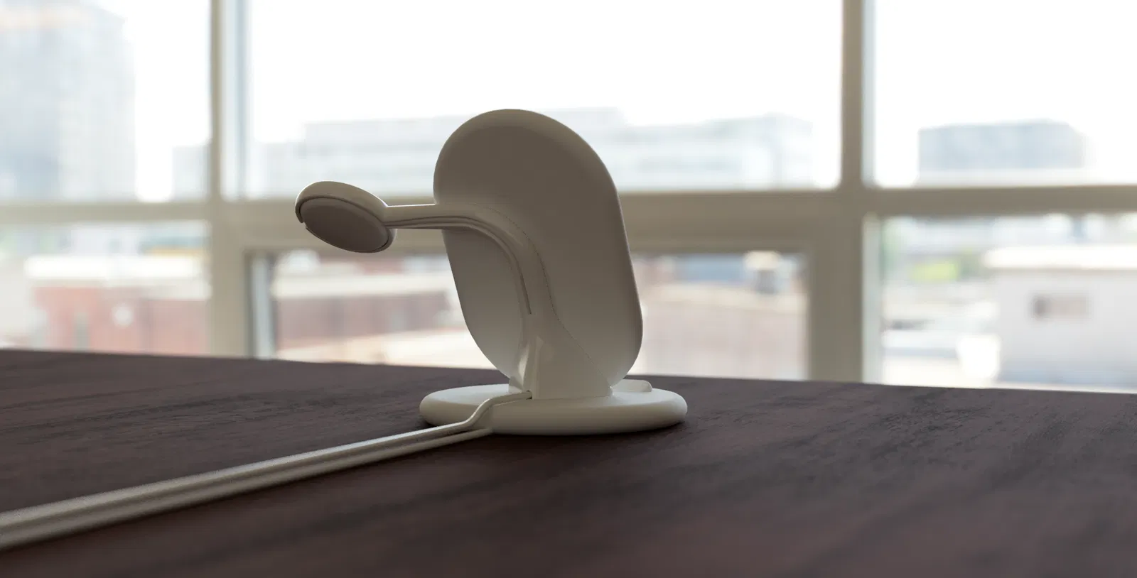 - Gắn đế sạc vào vòng của tay đỡ. Đảm bảo cáp vừa với rãnh.