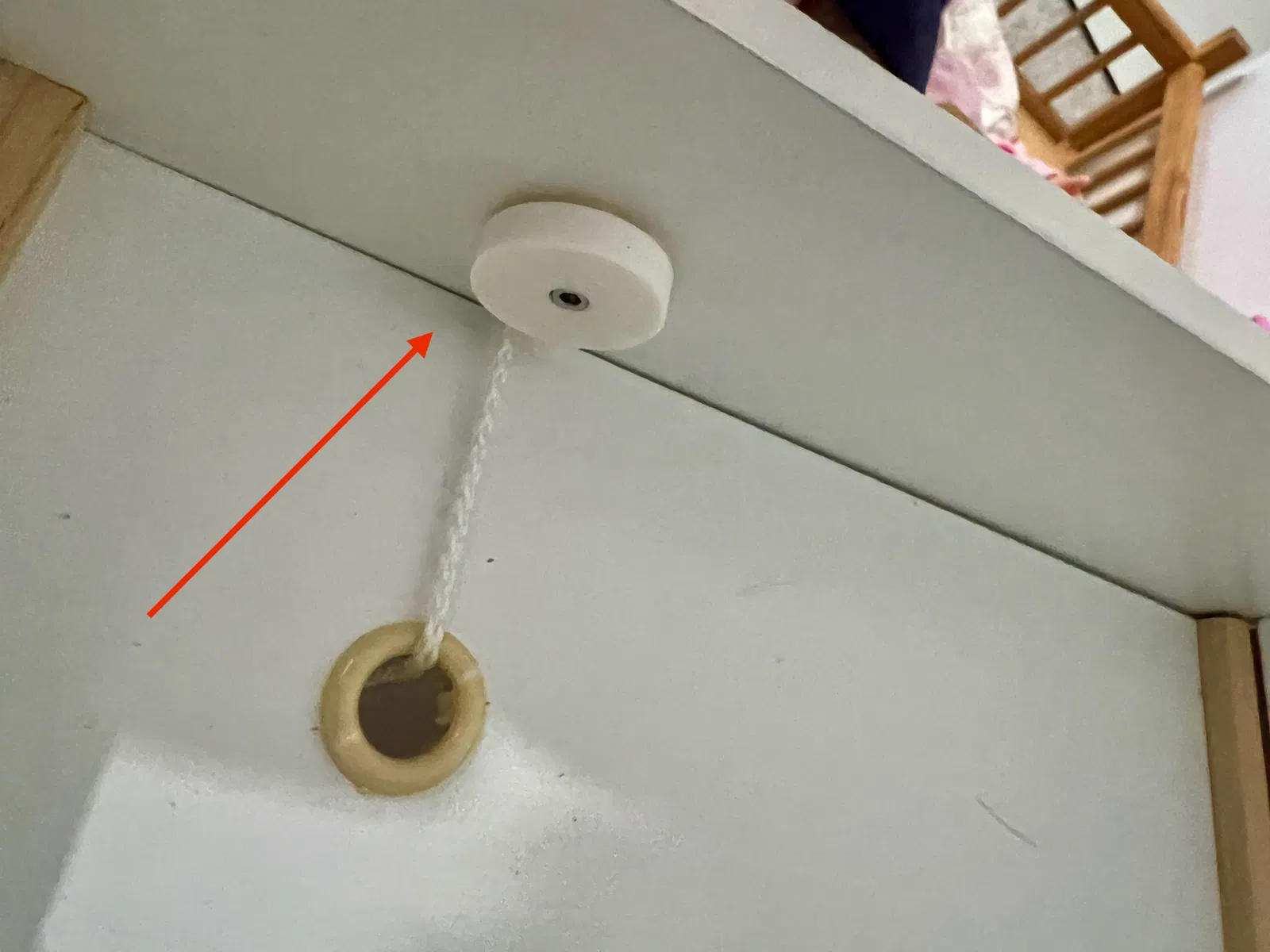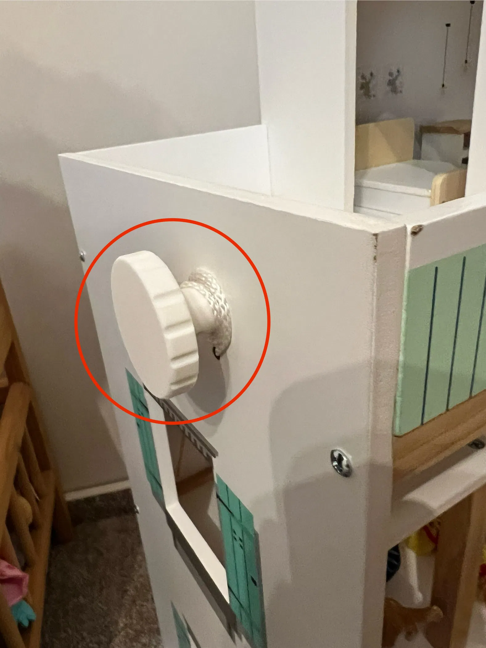 Thay thế nút nâng nhà búp bê MyToys. Nút gỗ ban đầu không chắc chắn. Cái này dùng tốt hơn nhiều, đặc biệt là khi giữ lại vòng lò xo nguyên bản bên dưới.
