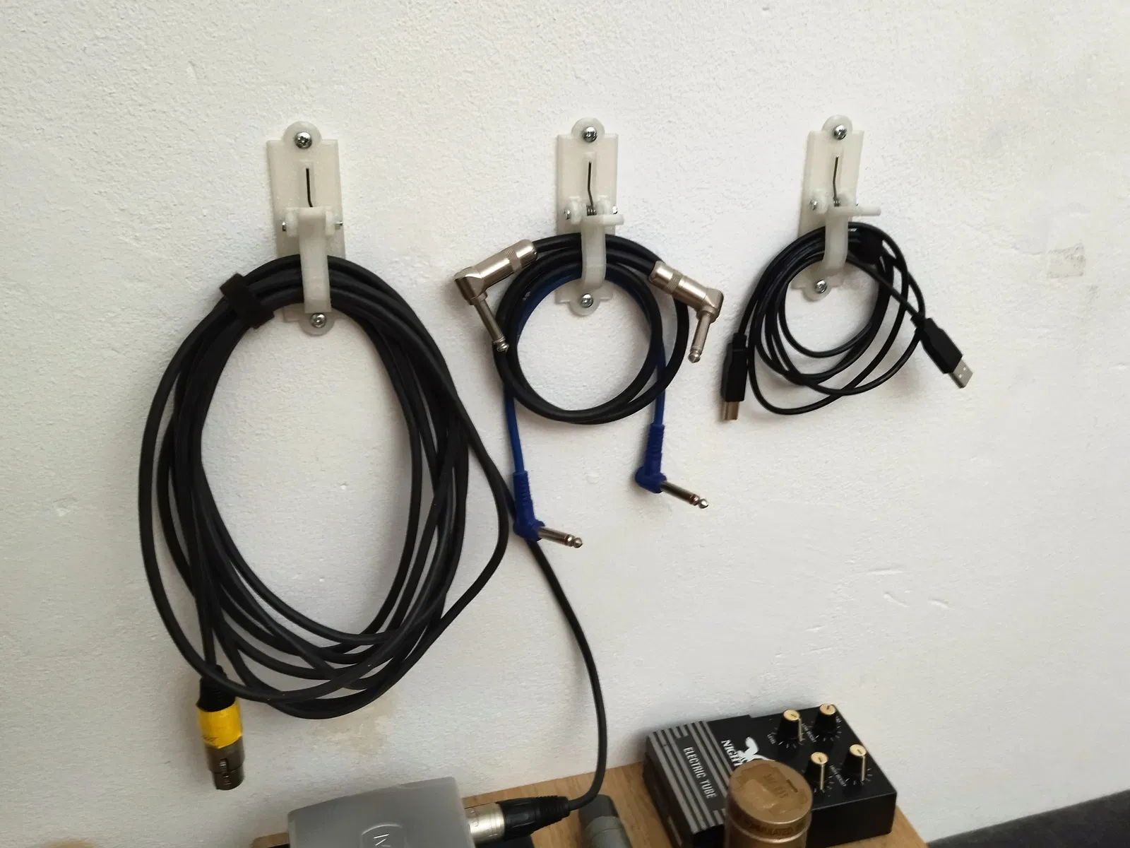 Dọn dẹp đồ đạc trên bàn & kệ lên tường đi nè - tui hay dùng cái này để treo dây cáp, đặc biệt là mấy cọng dây nhỏ, ngắn hay không tiện để treo lên móc gì đó.