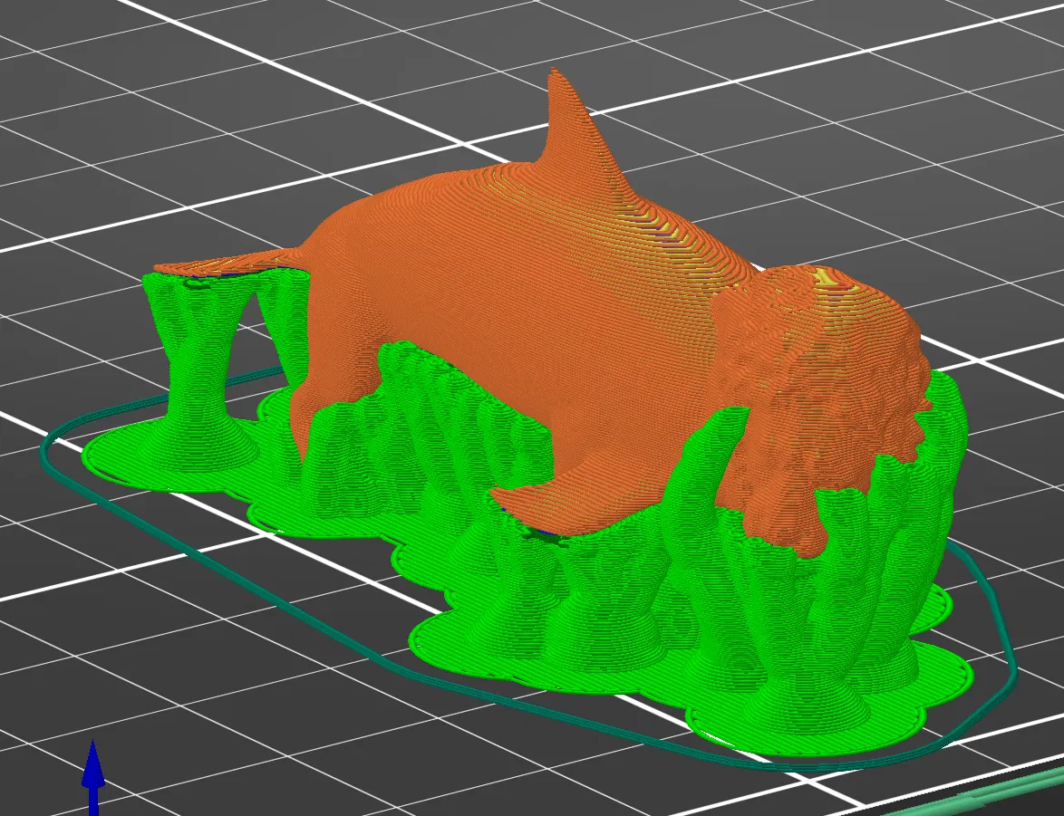Tổng hợp độc đáo đầu sư tử, thân cá heo và chân chó. Mô hình này có nhược điểm là tốn khá nhiều vật liệu hỗ trợ trong quá trình in.