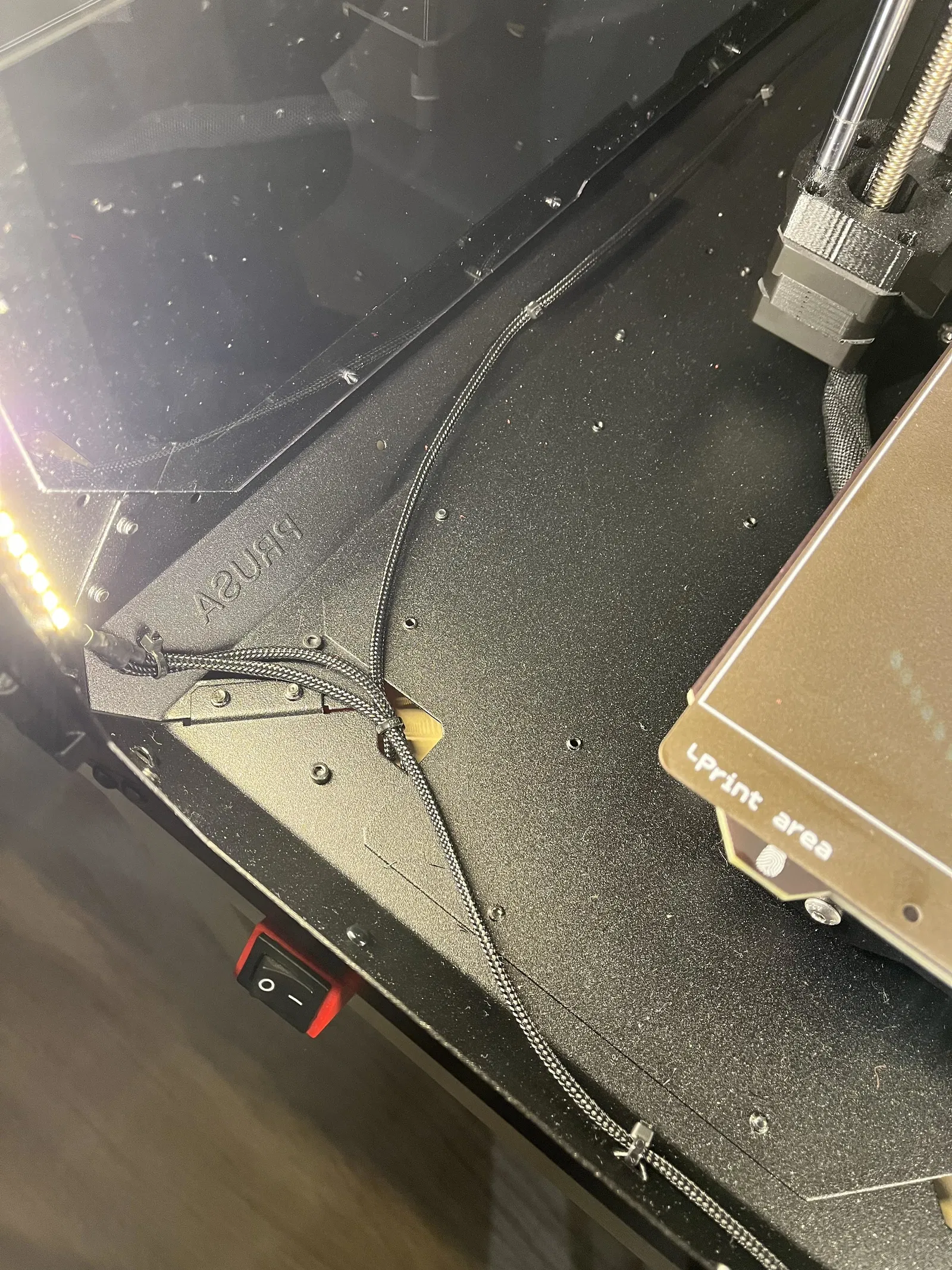Giá đỡ công tắc cho đèn LED trong Tủ Prusa. Hướng dẫn lắp đặt công tắc và dải đèn LED bằng đinh tán và plexiglass hoặc giá đỡ in 3D. Khuyến nghị về cách gắn dải đèn LED để tản nhiệt tốt.