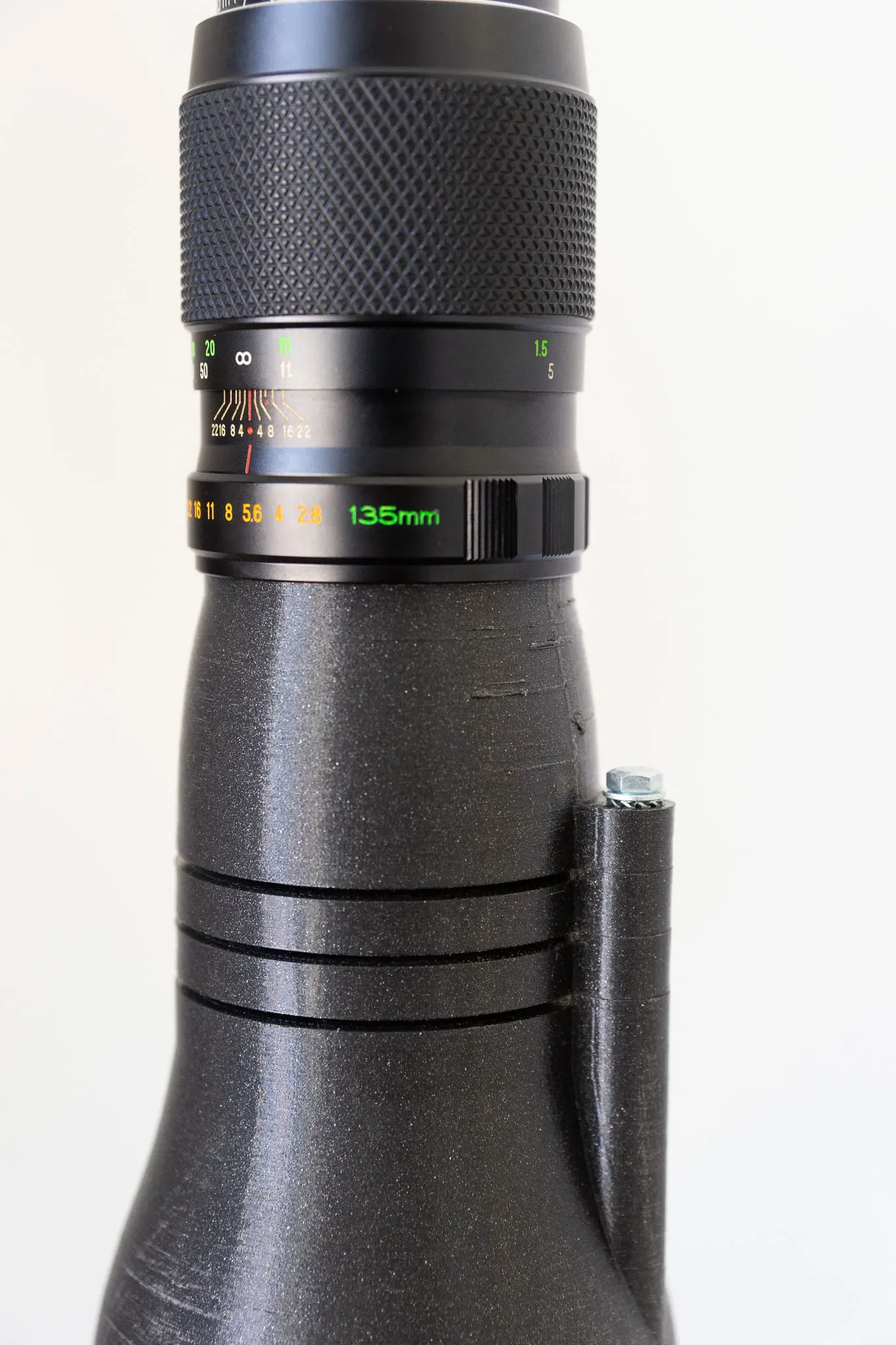 Thiết kế của tôi được dự định sử dụng với các ống kính M42 cổ điển, nhưng bạn có thể remix thành phần ống kính chuyên dụng để phù hợp với bất kỳ loại ngàm nào. Tôi muốn một thiết kế linh hoạt cho phép tôi tùy chỉnh dựa trên nhu cầu. Phần kết nối ống kính được thiết kế để có khoảng cách tiêu cự đúng (đối với ống kính M42 là 45. 46 mm), sau đó phần kết nối với ngàm Bowens có một khe để cho phép chèn một gobo tròn với đường kính 60 mm và độ dày 1. 6 mm (bạn có thể in GOBO của riêng mình bằng PLA). Tôi cũng đã thiết kế một phần bổ sung cho phép thêm nhiều GOBO hơn. Trong sản phẩm cuối cùng của tôi, tôi có 3 khe cho GOBO, một cho tấm khuếch tán, một cho gel và khe gần nhất với ống kính là mẫu thực mà tôi muốn chiếu, nhưng bạn có thể chồng thêm nếu cần. Phần ngàm Bowen cũng có 3 chỗ ren đồng M5 để giữ các phần lại với nhau bằng các bu lông M5. Nó cũng được phủ bằng keo nhôm để cải thiện độ phản xạ và quản lý nhiệt tốt hơn. Bạn có thể xem một số ví dụ ở đây: https://www. mauriziolenzi. com/gobo-projector