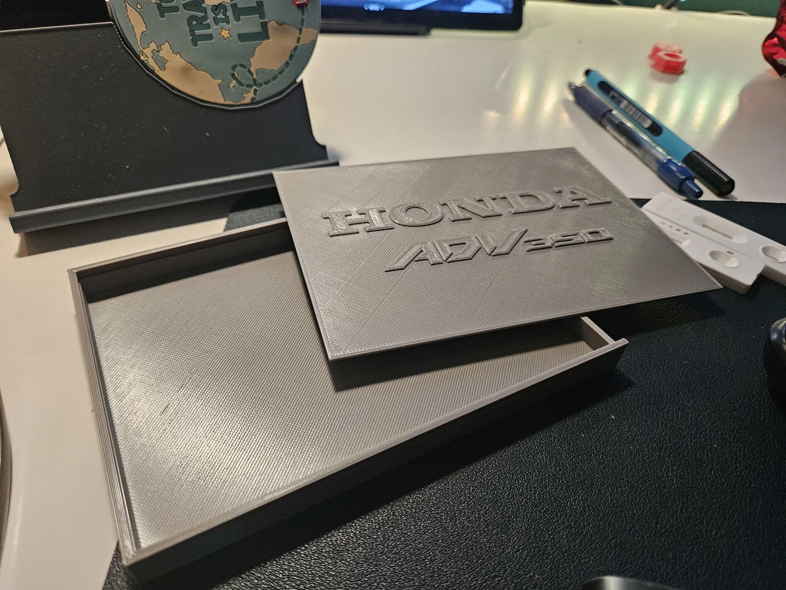Hộp trượt mỏng, đựng giấy tờ bảo hiểm xe trong Honda ADV 350. In bằng PETG, vừa giấy A4 gấp đôi. Có nắp logo xe và nắp trơn cho các loại xe khác.