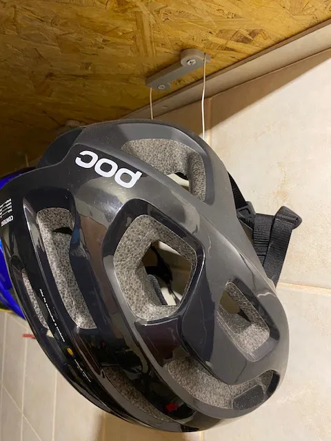 Giá treo nón bảo hiểm xe đạp, gắn dưới trần nhà. Sản phẩm này cần thêm dây thép để tùy chỉnh, đảm bảo độ bền và sử dụng lâu dài.