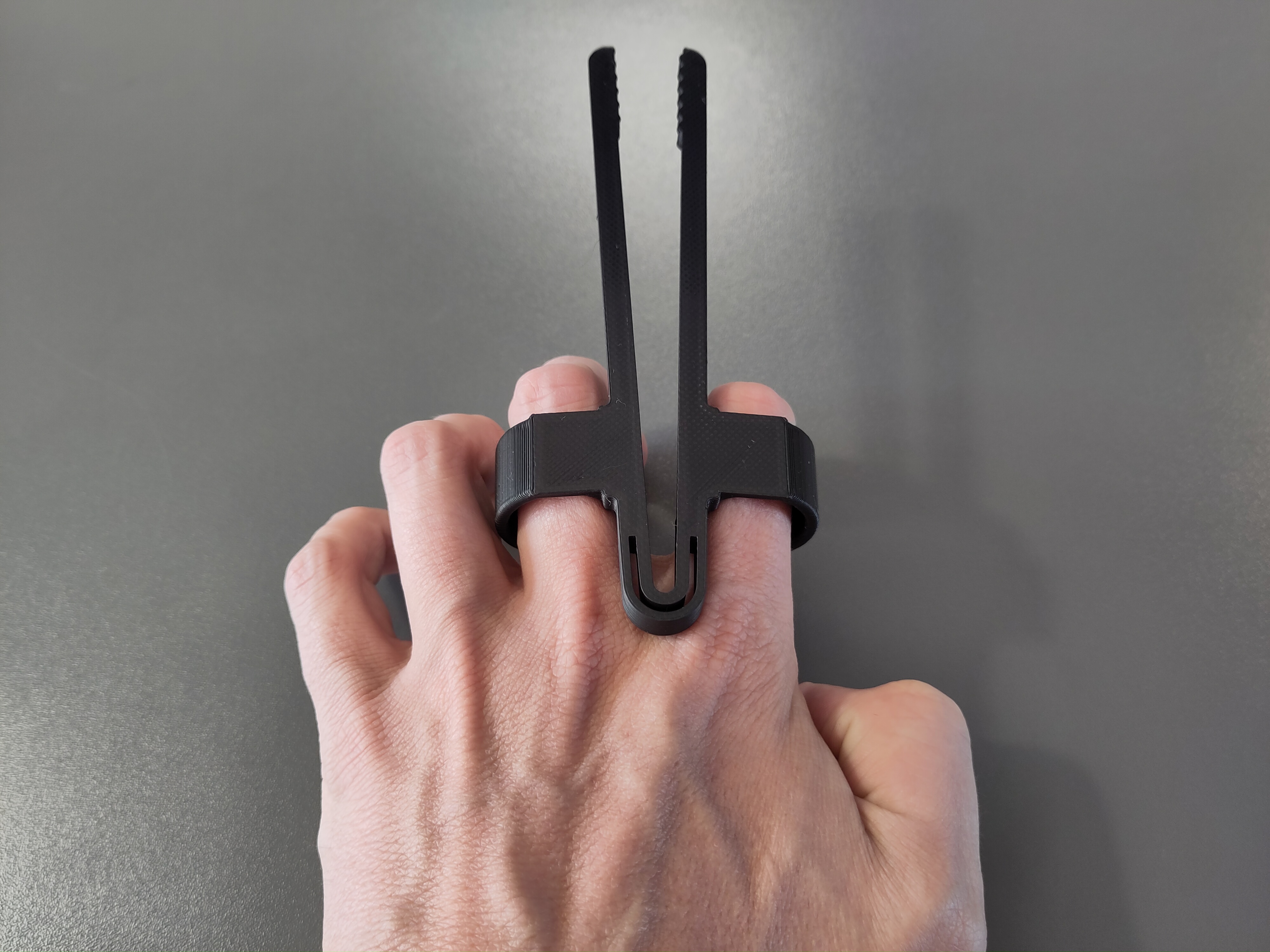 Tao thích cái "Finger Chopsticks" của @MrDaedelus lắm mà nó cứ bị tuột khỏi tay hoài. Với lại là không có kéo giãn ra được nên tao làm lại một phiên bản mod luôn. Đường kính của cái khoen đeo ngón tay á tầm 22mm hay là 0.9 ngón tay ú ụ á. Chúc mấy bà ăn vặt vui vẻ. In ấn: