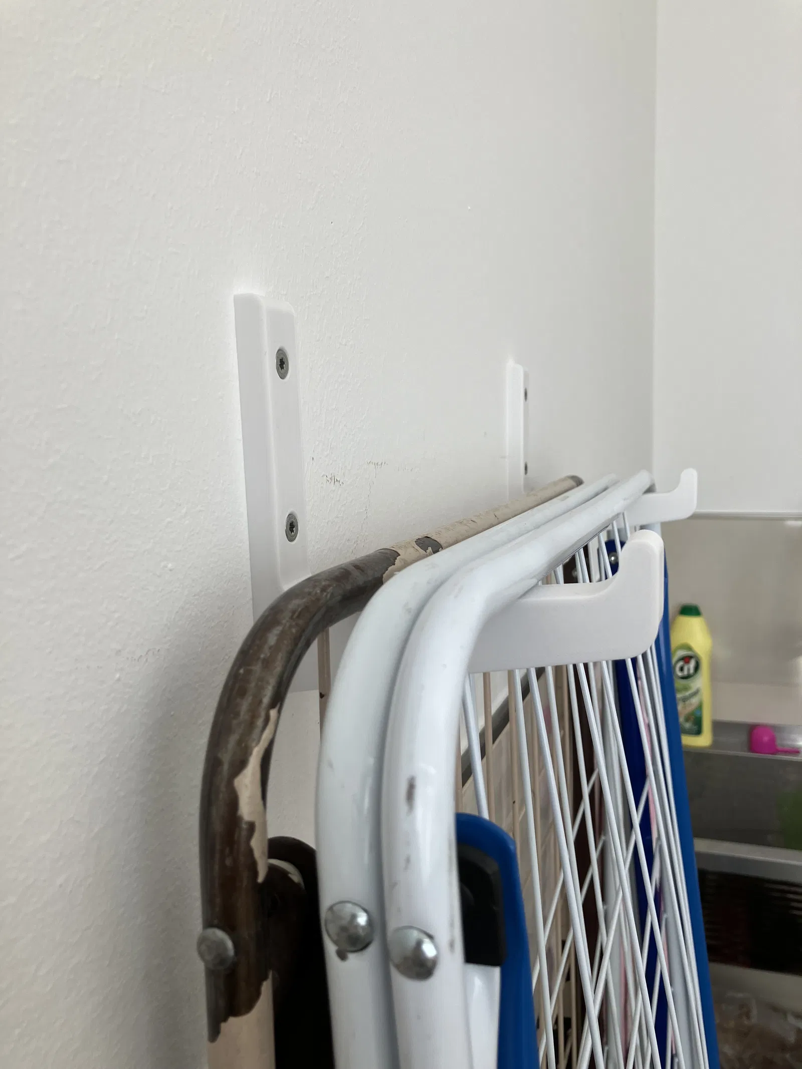 Cái móc này làm ra để treo đồ nặng nha. Ban đầu là để treo rổ đồ giặt, nhưng mà treo đồ khác cũng ok luôn. In bằng PETG với các thông số cấu trúc chắc chắn, đảm bảo chịu lực tốt.