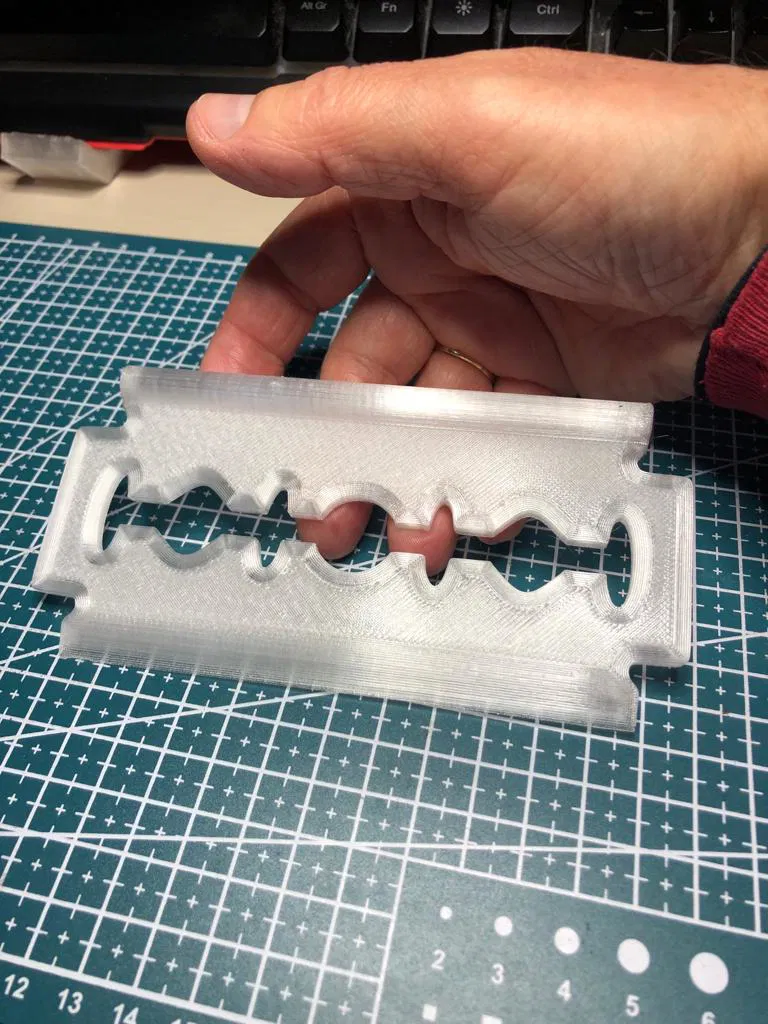 Dao cạo băng hình lưỡi dao cho kính xe hơi, có phiên bản 2.0 gia cố. Thích hợp in bằng vật liệu PETG, với các thông số khuyến nghị: chiều cao lớp 0.2mm, 5 lớp tường và 20% độ điền đầy.