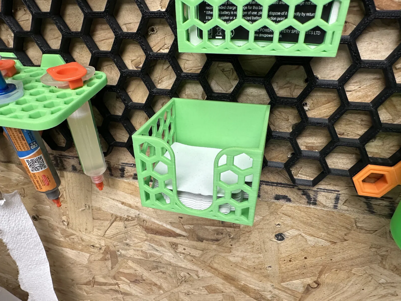 Hộp treo tường kích thước 60x58mm, một món đồ hoàn hảo để bổ sung vào bộ tổ chức lục giác trên tường của bạn, có thể chứa bất cứ thứ gì có kích thước lên tới 60x58mm.