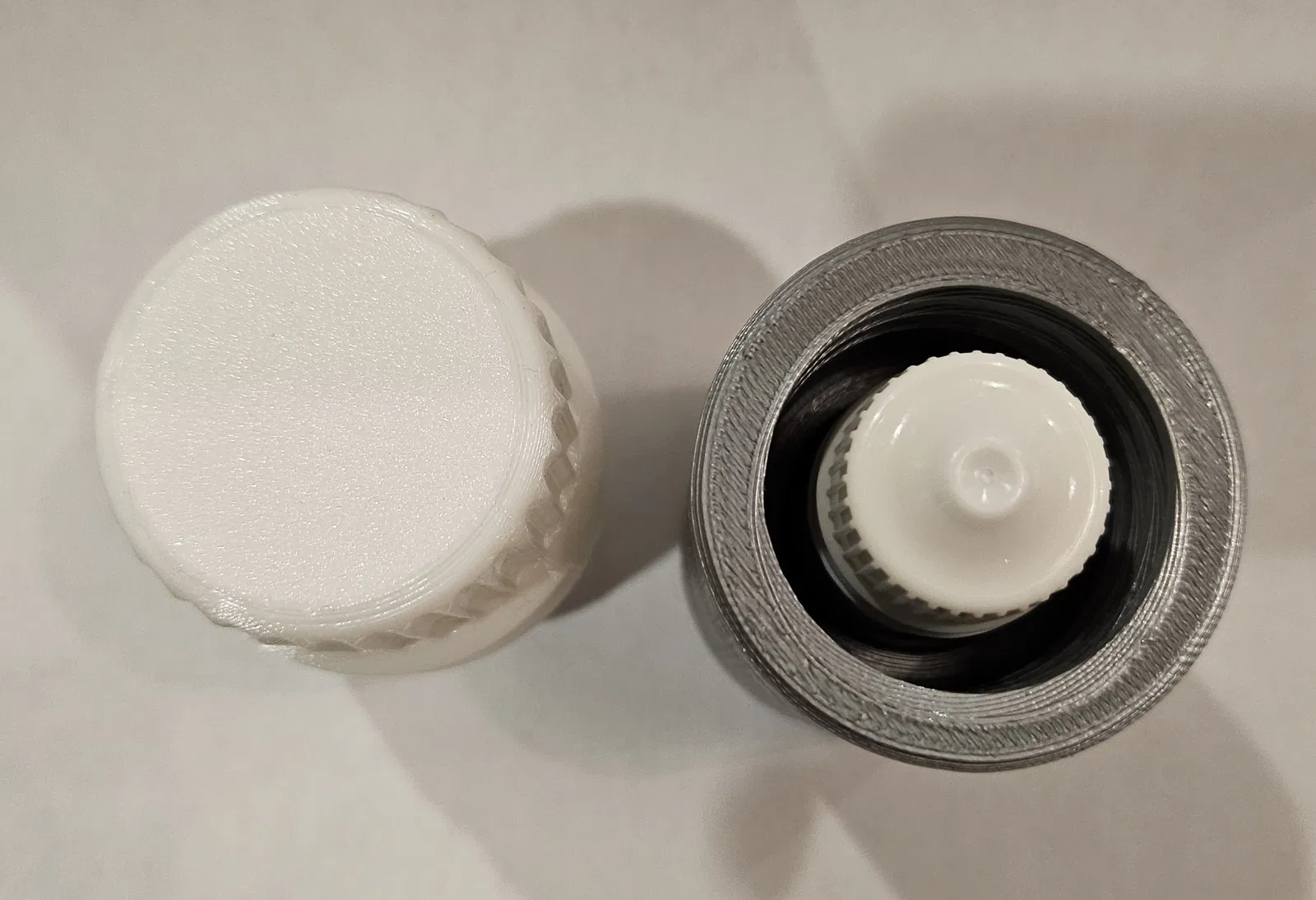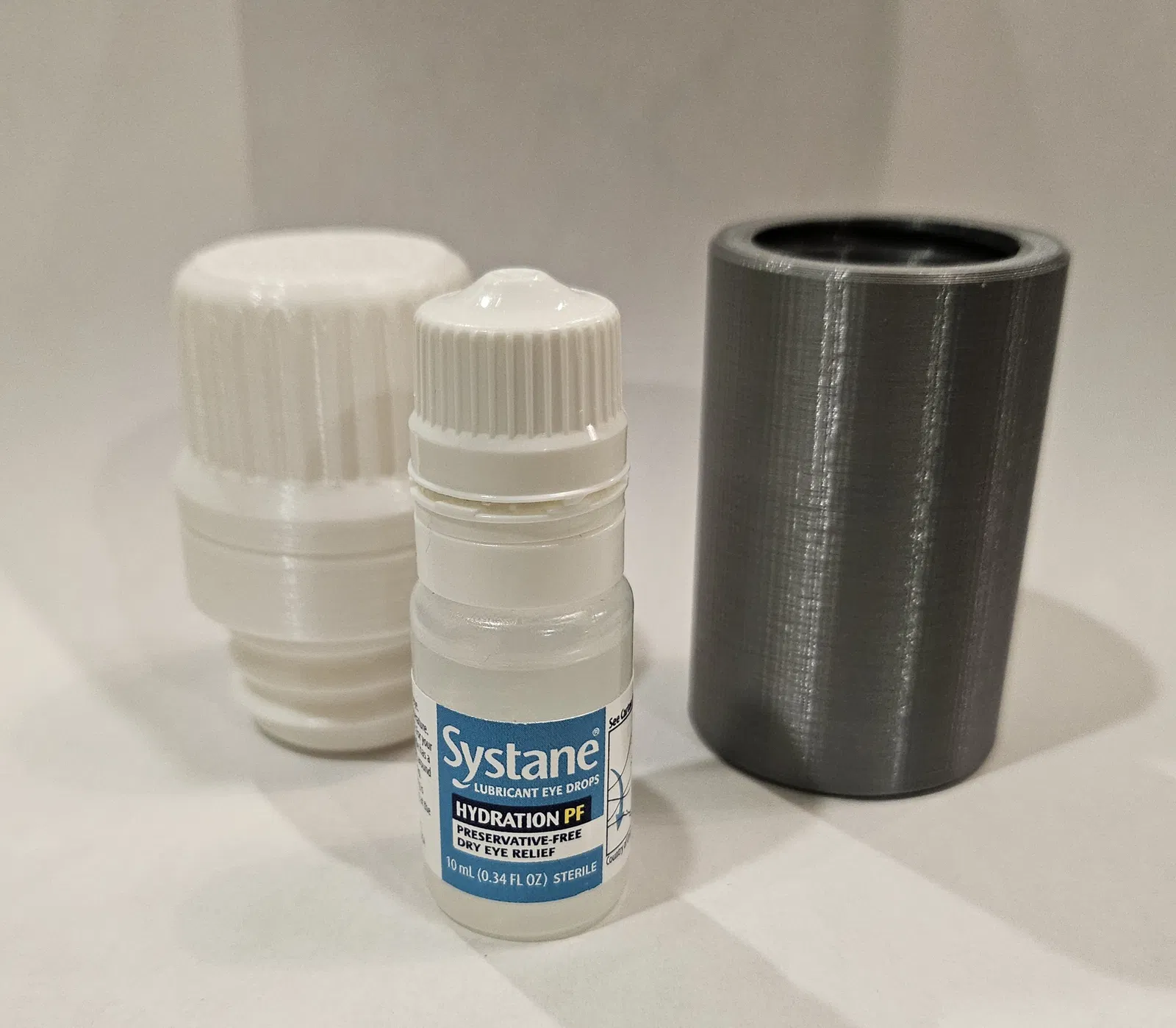 Lần đầu tui thử thiết kế ren in 3D nè. Tui cần một cái hộp để bảo vệ chai thuốc nhỏ mắt của tui. Tui có thiết kế mấy cái dụng cụ in 3D cho công ty rồi, mà chưa bao giờ làm ren hết.