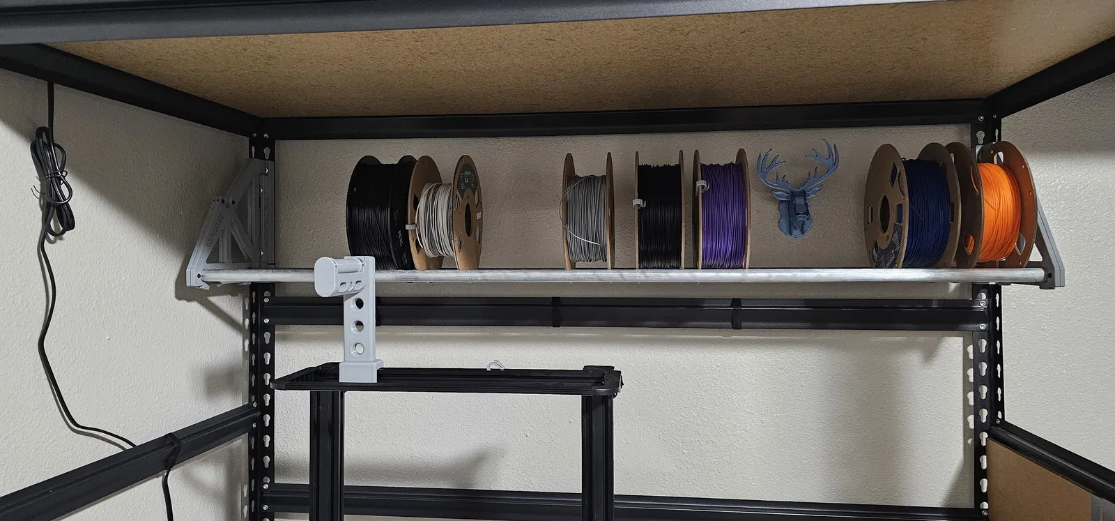 Tôi muốn có một cách hay để gắn RepRack phía trên máy in của mình trong không gian chưa sử dụng (lãng phí) ở khu vực thuận tiện. Tôi đã tạo phiên bản hai kẹp để yên tâm về độ cứng cấu trúc, vì kệ nằm ngay phía trên máy in.