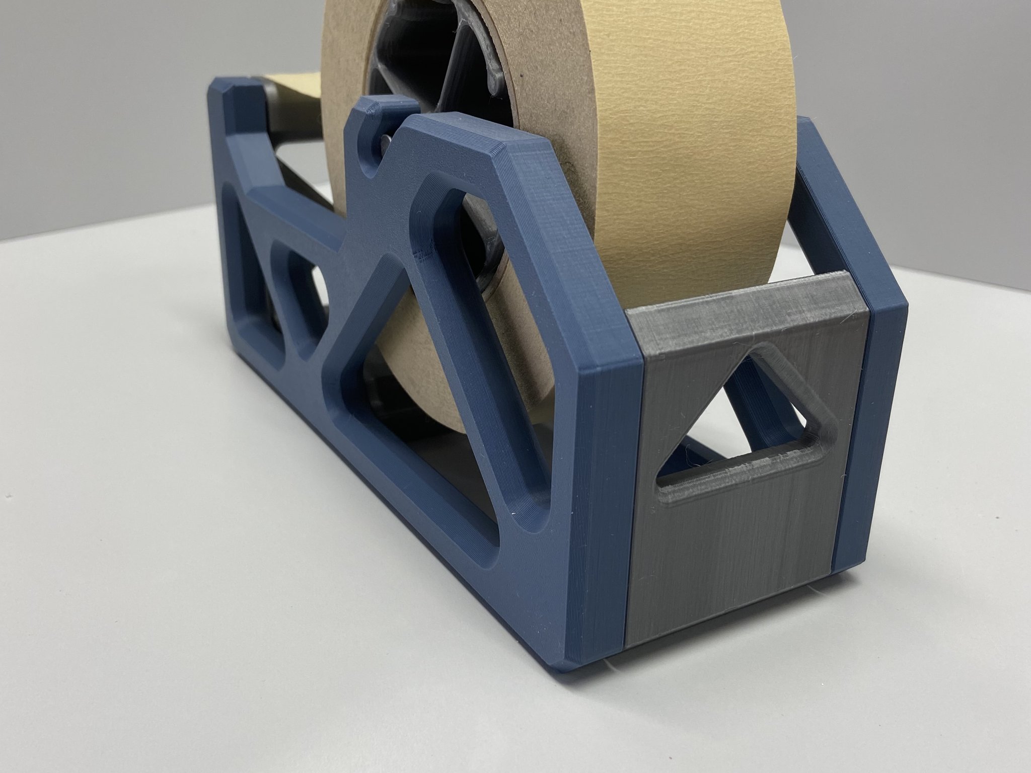 Đây là một máy phân phối băng dính có thể điều chỉnh và nhiều kích thước. Tôi đã thiết kế cái này đầu tiên như một máy phân phối không điều chỉnh có kích thước đơn (3/4in), được giữ lại bằng các ốc vít. Bình luận mà tôi nhận được nhiều nhất là: còn các kích thước khác đâu? Tôi đã hoàn thiện thiết kế, sửa một vài lỗi trong các tập tin và làm cho toàn bộ cái này có thể tùy chỉnh hoàn toàn. Bây giờ bạn có thể làm cho cái này rộng như bạn muốn, giữ lại bao nhiêu cuộn băng dính với bất kỳ kích thước nào bạn cần. #### Các phiên bản Phiên bản ban đầu của tôi với ốc vít vẫn có sẵn cho những ai thích vẻ ngoài của các ốc vít. Phiên bản này đáng tiếc là không điều chỉnh, nhưng hiện có sẵn ở tất cả các kích thước. Phiên bản Dán là phiên bản điều chỉnh có sẵn cho các cuộn băng dính rộng ½ in, ¾ in, 1 in và 2 in. Cả hai phiên bản đều có lỗ ở đáy chấp nhận nam châm tròn 6x3mm. Máy phân phối này ban đầu được thiết kế để đặt trên hộp công cụ kim loại của tôi… sử dụng bao nhiêu nam châm tùy thích (hoặc không sử dụng). Các trục chấp nhận các cuộn tiêu chuẩn 3 inch (đường kính bên trong). Có 2 phiên bản của các khung. Phiên bản cũ rộng hơn, đó là sự khác biệt duy nhất. Cả hai đều hoạt động giống nhau. Phiên bản mới hơn sử dụng ít nhựa hơn, giữ cho tổng chiều rộng của máy phân phối hợp lý và rõ ràng tiết kiệm thời gian in. Tôi khuyên bạn nên sử dụng phiên bản cũ rộng hơn nếu bạn đang in một máy phân phối cuộn 1/2 inch để làm cho nó ổn định hơn. Tôi đã tạo một phiên bản thứ hai của các khoảng cách 2 inch phía trước và phía sau có các lỗ hình tam giác. Một lần nữa, điều này tiết kiệm nhựa, nhưng nó cũng làm cho nó trông nhẹ nhàng hơn, thoáng đãng hơn, mở hơn…. cả hai phiên bản hoạt động hoàn toàn giống nhau. Lựa chọn của bạn. #### In ấn Tôi in các máy phân phối của tôi bằng PLA - 0.2mm lớp