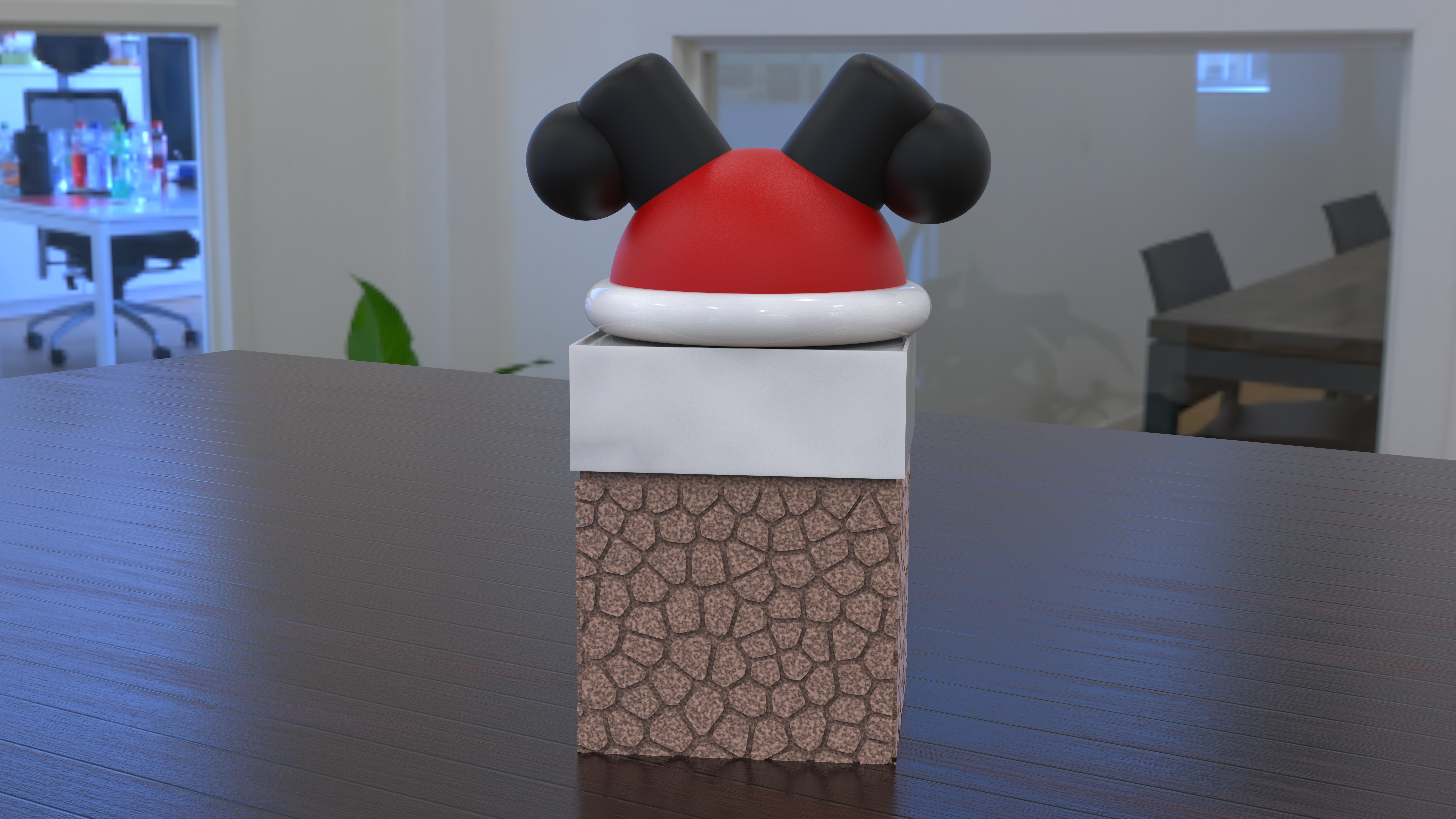 Đây là một cái hộp kẹo có ren vặn, với hình ảnh ông già Noel đang gặp khó khăn với cái ống khói này. Phần thân hộp có ren vặn, và nắp là hình ông già Noel bị kẹt trong ống khói, rất phù hợp để đựng kẹo.