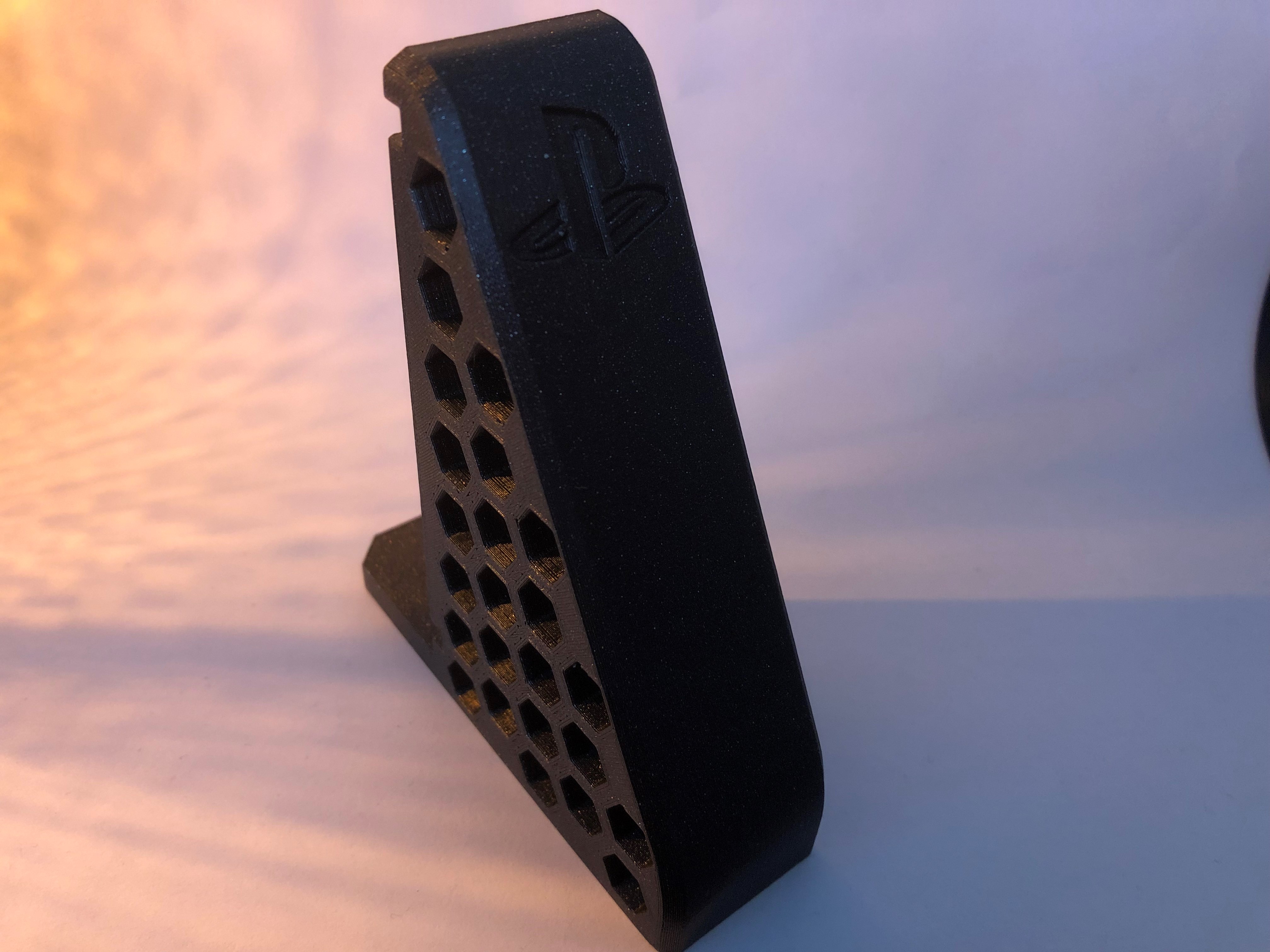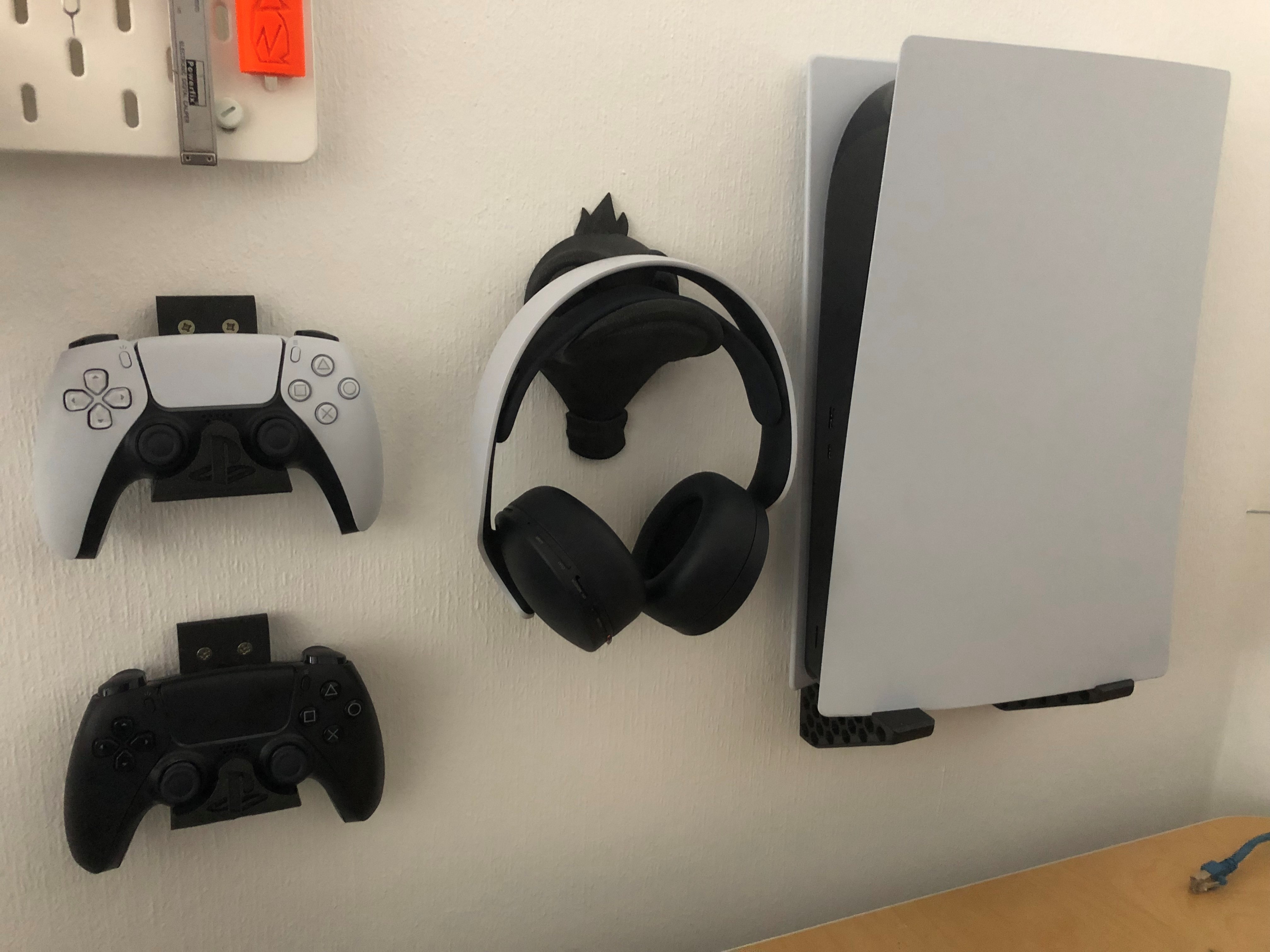 Giá treo tường cho PS5 (Bản Digital). Có thể treo bên trái hoặc bên phải. Giá treo này được làm bằng PLA, có thể tùy chỉnh infill và thời gian in khoảng 12 tiếng.