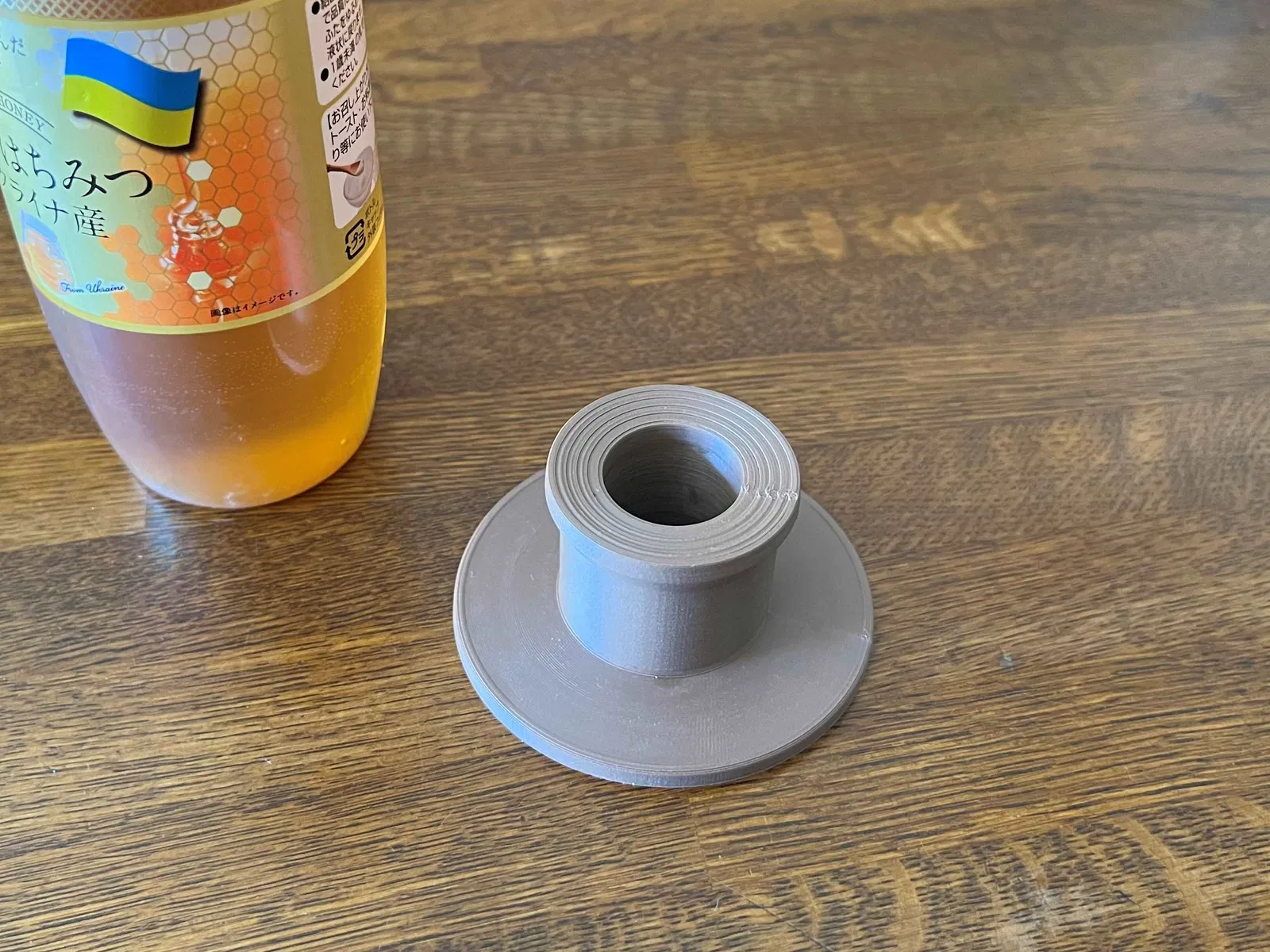 Cái chân đế này đơn giản lắm, chỉ cần để chai mật ong vô rồi úp ngược lại là xong. Phù hợp cho ai thích để chai mật ong trên bàn ăn hoặc tủ bếp cho đẹp mắt, dễ lấy. Dùng vật liệu PLA, file STL.
