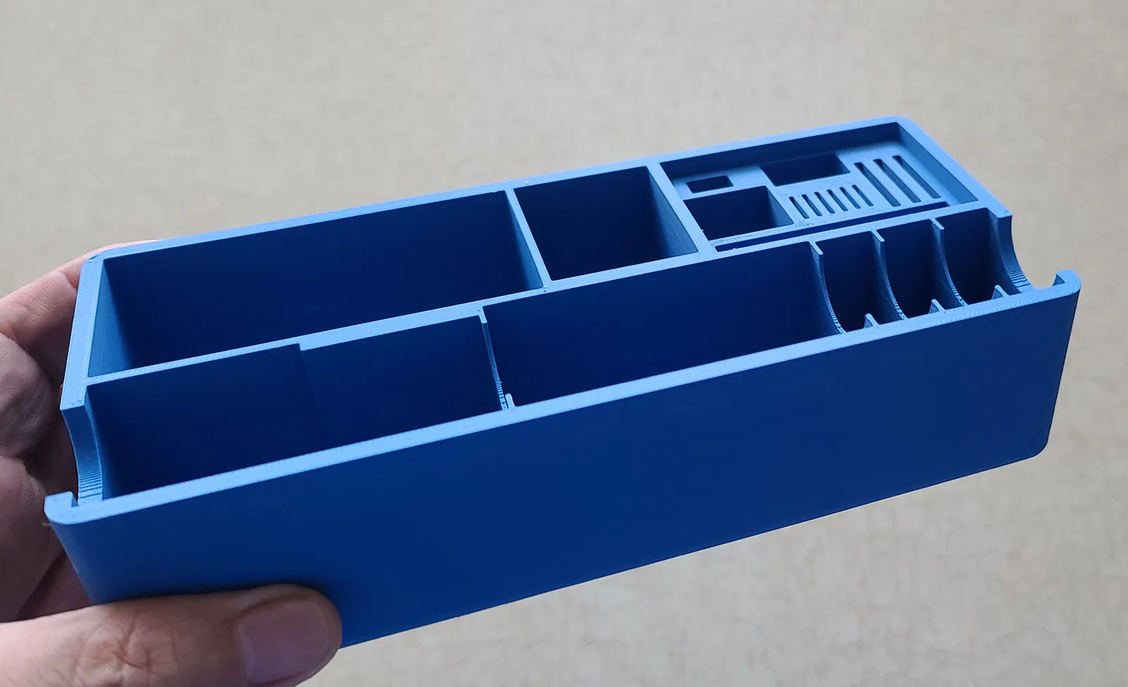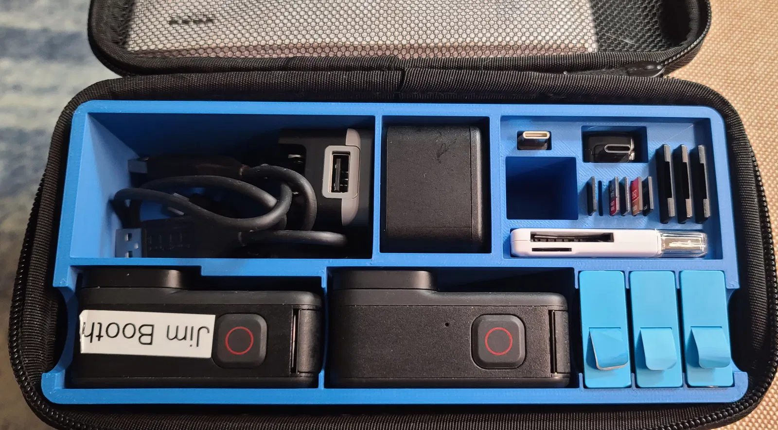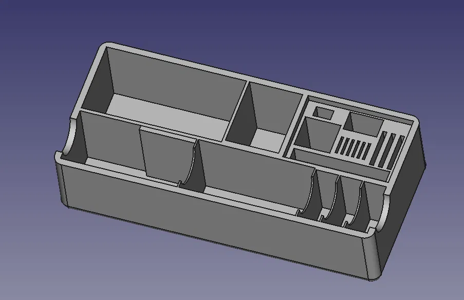 Đây là một bộ tổ chức chèn vào hộp dây kéo của gopro hero 10 black hoặc các mẫu mới hơn. Nó có thể chứa tới 2 máy ảnh gopro, 3 bộ chuyển đổi thẻ SD, 6 thẻ micro SD, bộ sạc 2 pin tiêu chuẩn, 3 pin (thực ra là nhiều pin hơn vì có một số ngăn phụ), một bộ chuyển đổi tường USB 110 volt sang 5 volt, hai bộ chuyển đổi USB linh tinh khác, cáp USB và một que USB chuyển thẻ SD. Về cơ bản, tôi đã làm cái này vì khi đi lặn, tôi để tất cả những thứ này lỏng lẻo trong hộp gopro và rất dễ bỏ quên đồ ở nhà. Bản in này KHÔNG CẦN SUPPORT. Thật ra, khi in trên máy bambu x1 carbon của tôi, phần mềm cắt lát cố gắng đặt một tấm lót xung quanh nó và tôi đã xóa nó vì không cần thiết. Tôi đã tải xuống một vài bản in STL khác cho gopro của người khác và nó quá chật, không có chỗ tốt để cắm thẻ SD, v.v. Bản in này mất 3,5 giờ để hoàn thành với chiều cao lớp là 0,2.