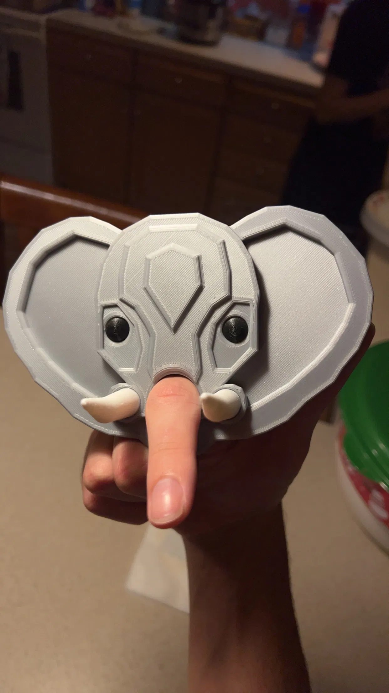 Nếu anh em có tùy chỉnh tỉ lệ con voi, nhớ tùy chỉnh cả mắt và ngà voi luôn nha. Mấy cái này có dung sai tích hợp là 0.5mm cho các khe rãnh, có thể sẽ cần dùng keo để cố định lại đó.
