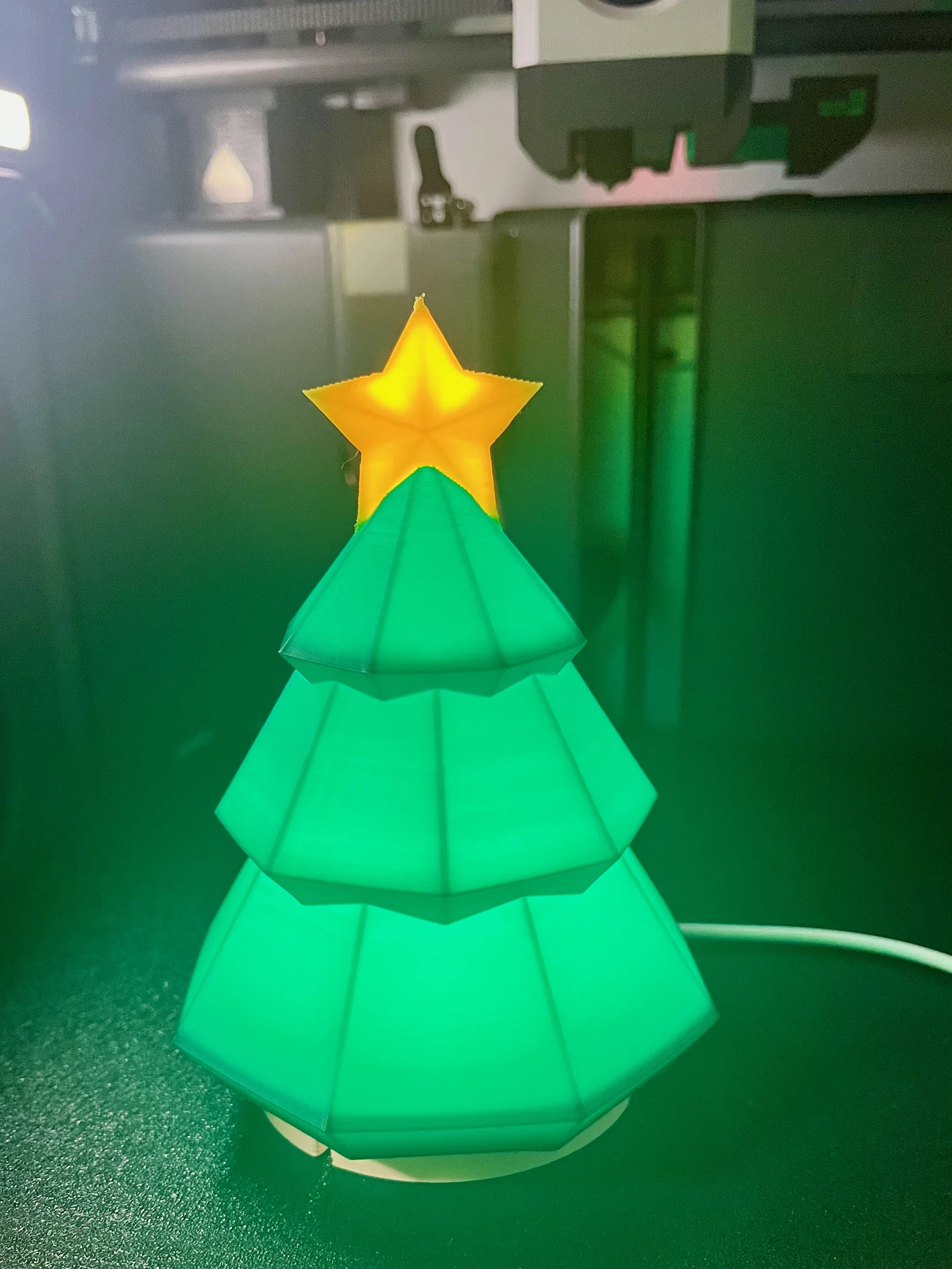 Đèn cây thông Noel đơn giản, thanh lịch có ngôi sao, được thắp sáng bởi Bộ đèn LED Bambu 001. In dễ dàng chỉ với một hoặc hai màu, ít tốn công đổi sợi nhựa.