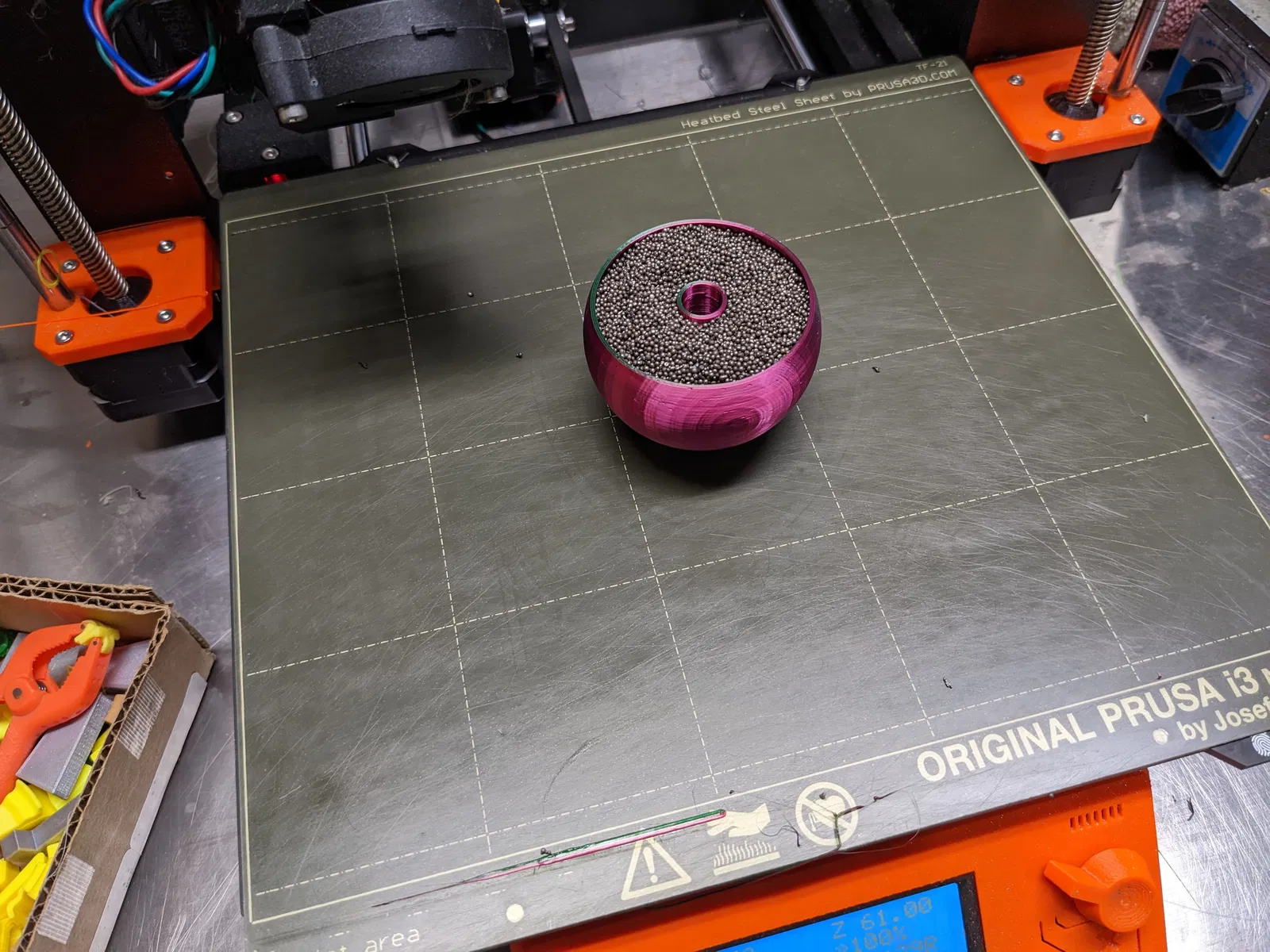- Bản in yêu cầu sử dụng "lõi" để tạo thêm trọng lượng. Tôi đã dùng hạt thép để bắn bi, nhưng cát cũng có thể hoạt động.