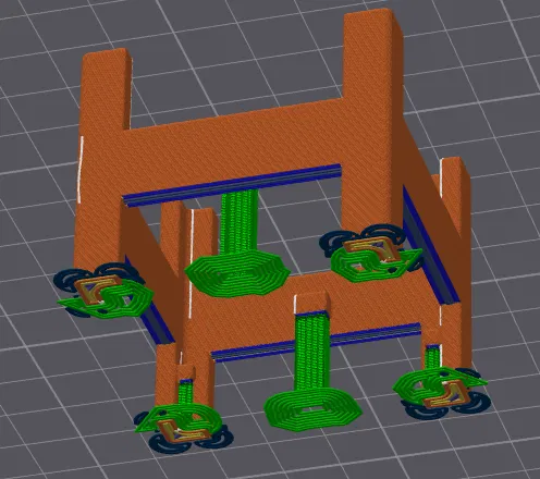 Nó là một bản in khá đơn giản, chỉ cần sử dụng brim hoặc mouse ears (5mm) và sử dụng hỗ trợ snug hoặc grid, tùy chọn “Don't support bridges” phải được bật, in các cầu nối @ 50mm/s để cho an toàn ;)