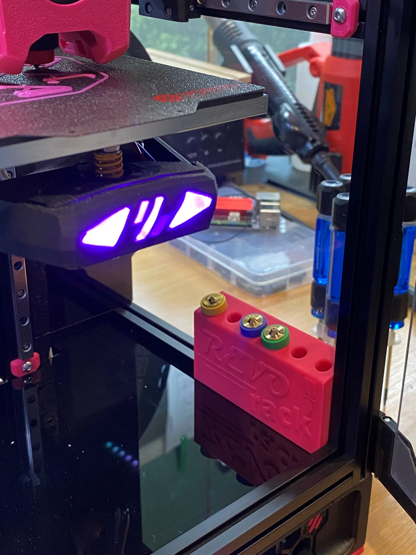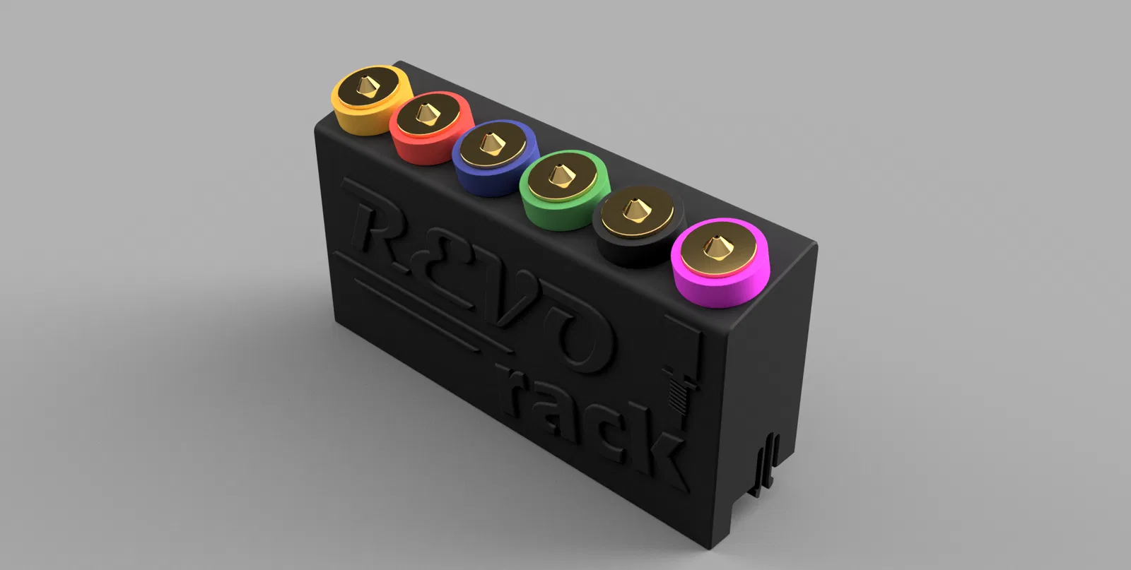 Giá đỡ đầu phun Revo đa năng cho máy in Voron V0. Có các kích thước cho 3, 4, 6 và 8 đầu phun, gắn trực tiếp vào khe V-slot 15mm mà không cần sửa đổi máy in. In bằng ABS cho kết quả tốt nhất.