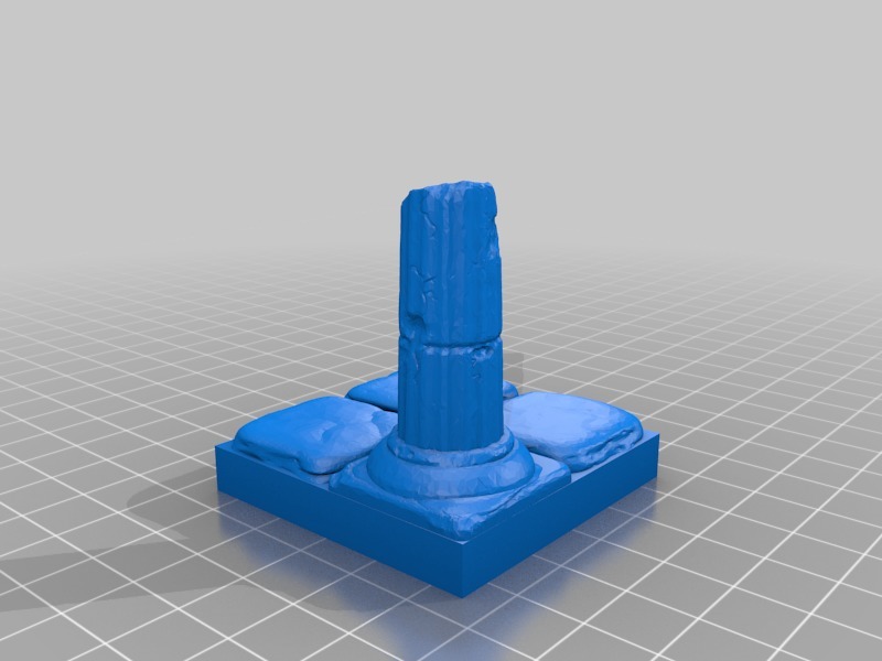 Mô hình trụ cột đổ nát trên gạch dungeon 2x2, được tạo bằng Tinkercad. Bạn có thể tùy chỉnh trực tuyến. Thông số in gợi ý: Máy in Kossel Delta, không Rafts, không Supports, độ phân giải 0.3mm, Infill 25%, dùng nhựa ABS trong mờ. Thích hợp cho trò chơi.
