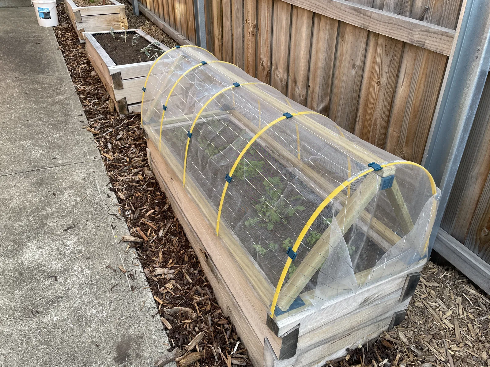 Mấy cái bộ phận in 3D này sẽ giúp bạn làm cái nắp che luống rau chỉ với mấy thanh gỗ cắt thẳng thôi. Không cần phải lo canh góc gì hết, vì mấy cái bộ phận in 3D này nó lo hết mấy cái phần phức tạp rồi. Thiết kế này còn có bản lề để bạn có thể nhấc nắp lên một bên nữa.