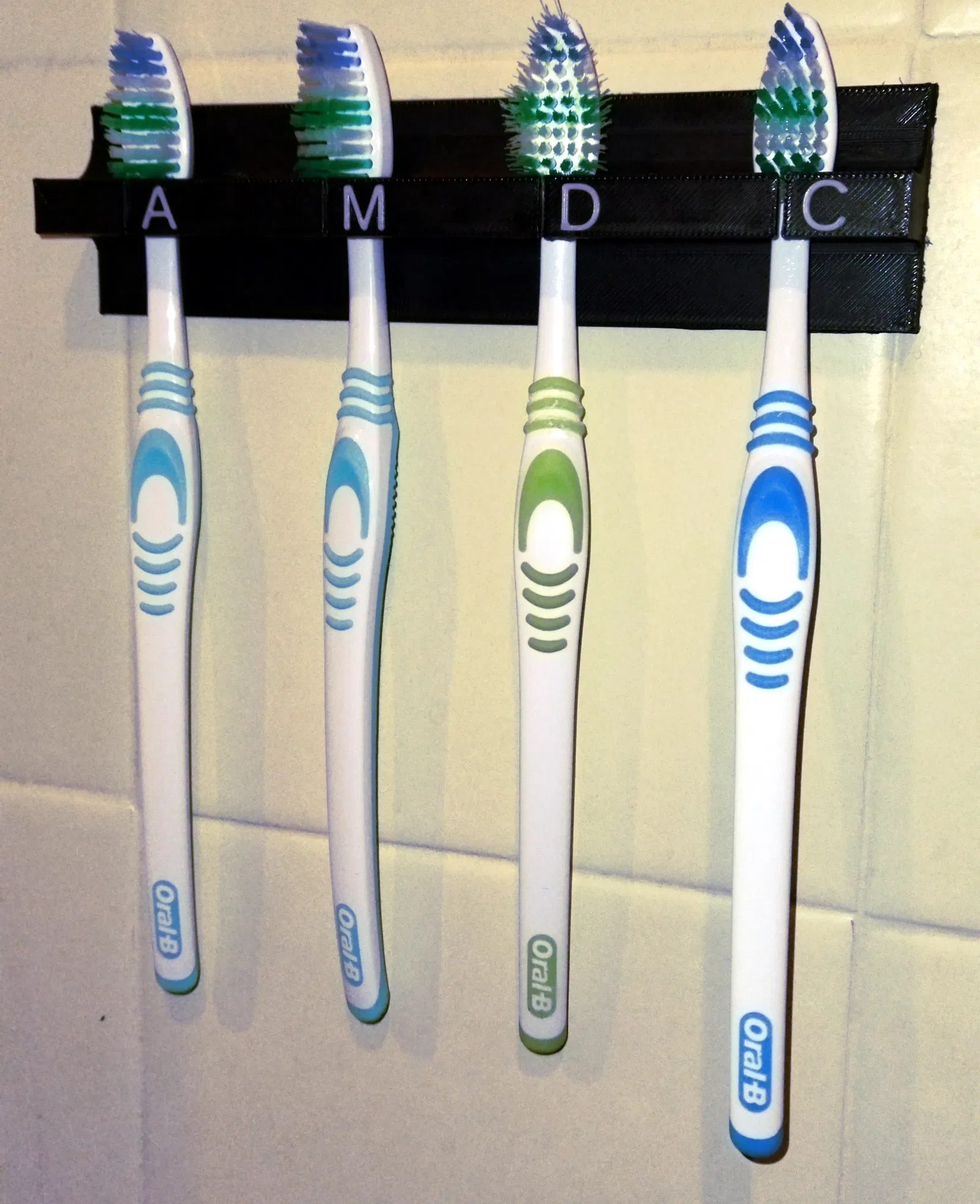 Cái đế cắm bàn chải này giúp mọi người trong nhà khỏi lộn bàn chải của nhau. Chỉ cần sửa file SCAD để nhập tên viết tắt, là bạn có ngay một khay cắm bàn chải cá nhân hoá theo đúng nhu cầu. Dễ dàng in 3D với file STL.