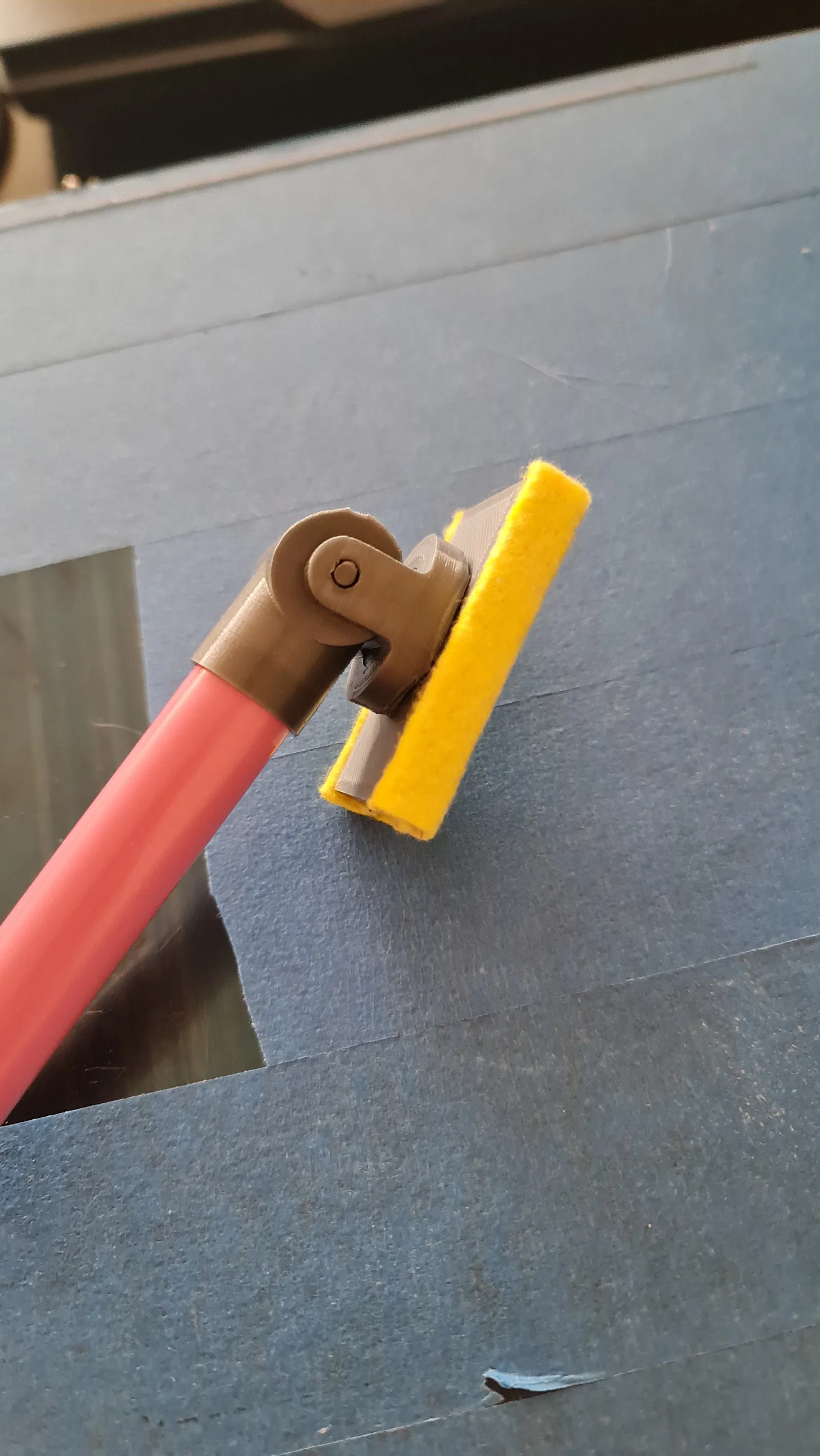 Mô hình 3D của dụng cụ vệ sinh kính bể cá với vải có thể thay thế là một thiết bị thiết thực và hiệu quả, được thiết kế để duy trì độ trong và sạch sẽ cho bề mặt kính bể cá.
