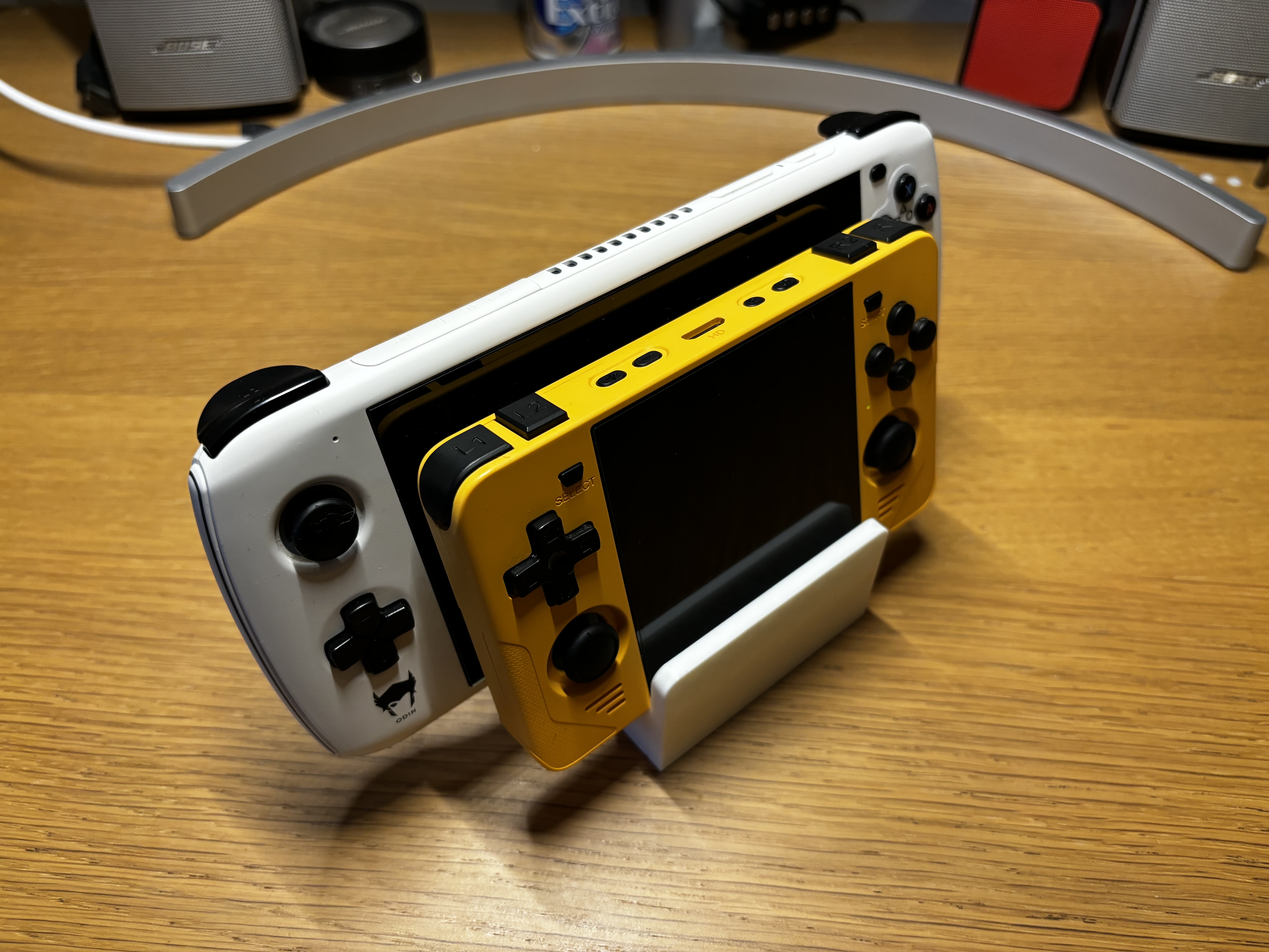 Một bộ phận gắn vào giá đỡ đa năng để giữ chiếc PowKiddy RGB30. Bản in mặt trước xuống kèm support để đảm bảo mấy cái kẹp ở phía sau được đẹp nhất.