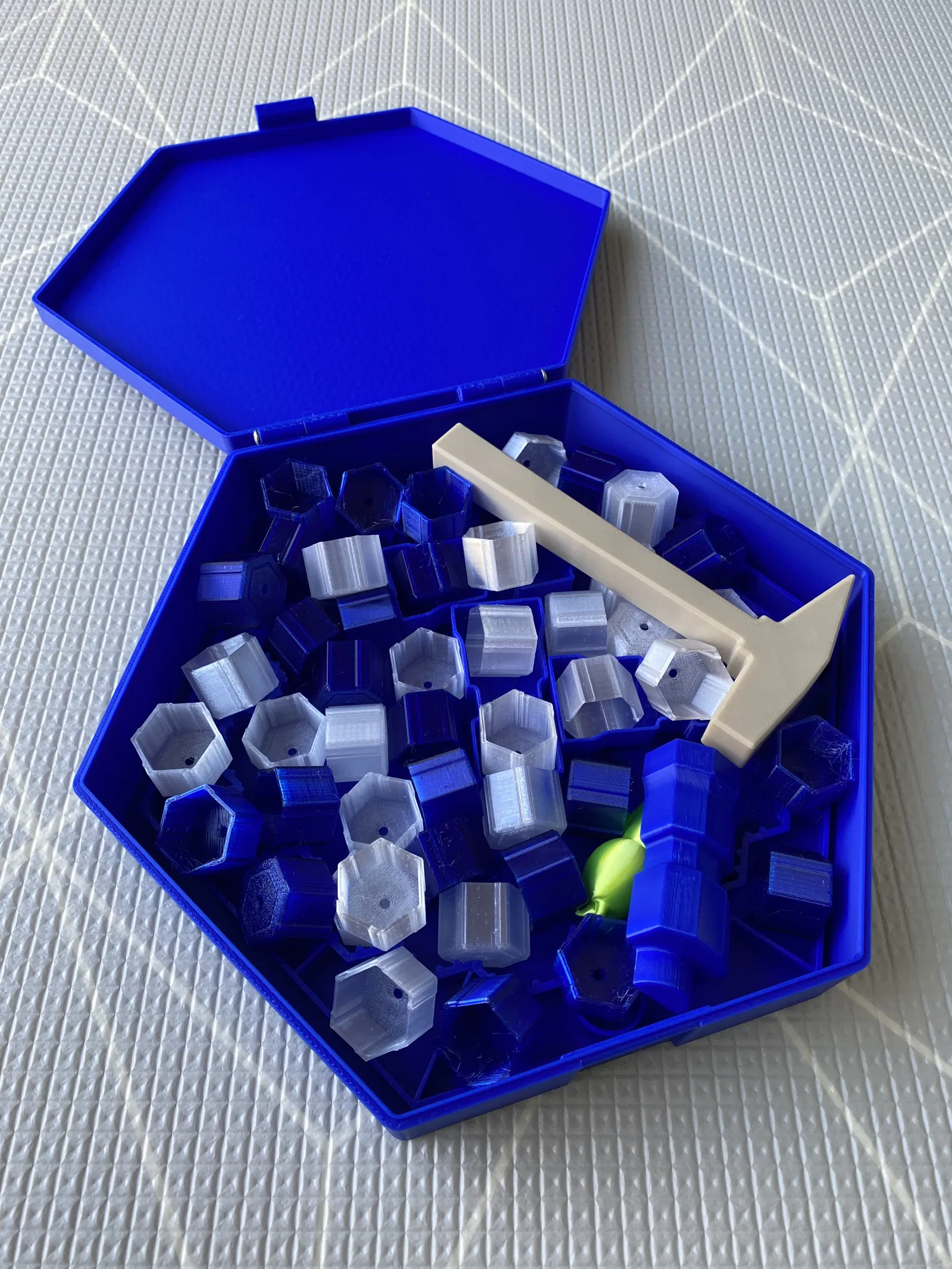 Tùy chỉnh hộp dụng cụ hình lục giác để phù hợp với bàn cờ Penguin Peril. Bao gồm file Fusion360 để dễ dàng tùy chỉnh kích thước và lắp ráp bằng ốc M3 x 30mm. Lựa chọn khít hay rộng tùy theo nhu cầu của bạn.