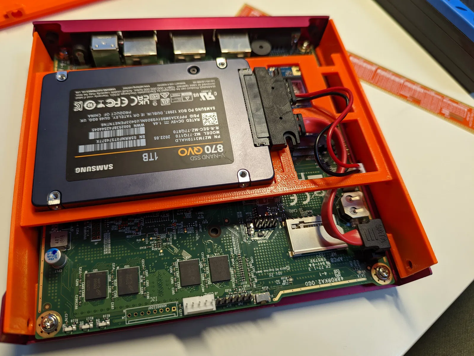 Chủ yếu là làm các lỗ khoét lớn hơn cho dây cáp để dễ đi dây hơn. Mình không tài nào đóng vỏ máy gọn gàng được với bản gốc, dù có dùng dây nối dài như gợi ý. Với bản này thì satacab1 là đủ.