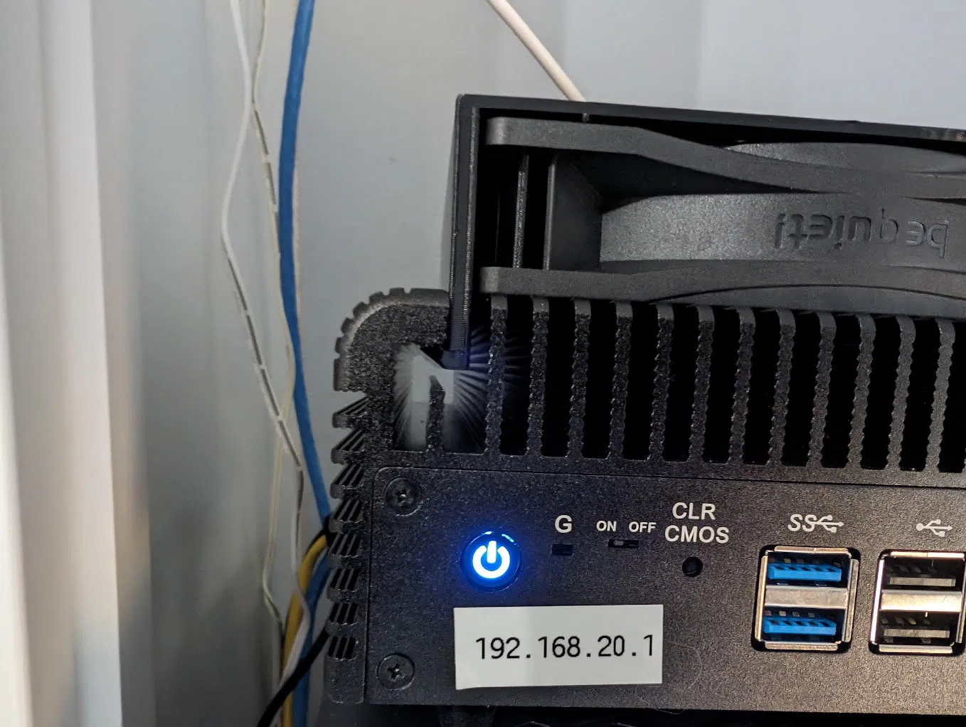 Cái đế này nên gắn vừa cho mọi quạt PC kích thước tiêu chuẩn 120mm nha. Con firewall nó có cổng cắm quạt micro 4 pin. Tui xài cái này: https://www.amazon.com/dp/B09DYLY95R?th=1, cắt cái đầu nối PWM 4 pin bình thường đi, rồi hàn cái đầu micro vô. Chân cắm trên mini pc của tui thì thứ tự y chang mấy cái cổng pwm bình thường, nghĩa là trên cái jack này (tiếc là vậy đó) dây đỏ = dây chung/tiếp đất, dây đen = 12v. Anh em có thể khoét cái lỗ ở dưới đáy ra, hoặc làm giống tui là rạch cái lưới che lỗ thông gió. Cái đầu nối micro sẽ vừa với khe đó nếu anh em cố gắng một chút.