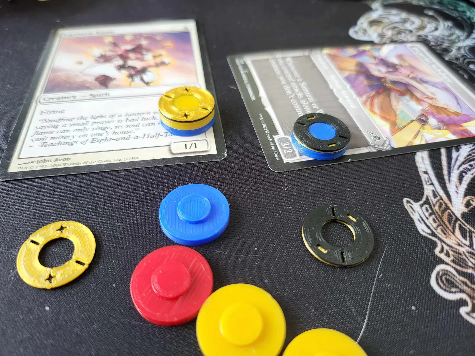 Cái này tui làm để xài chung với mấy cái chip MTG của anh Tony Youngblood đó. Tui muốn nó mỏng lại để xài mấy bộ bài mà cộng nhiều điểm +1/+1 liên tục á, cho nó đỡ chiếm chỗ trong hộp đồ.