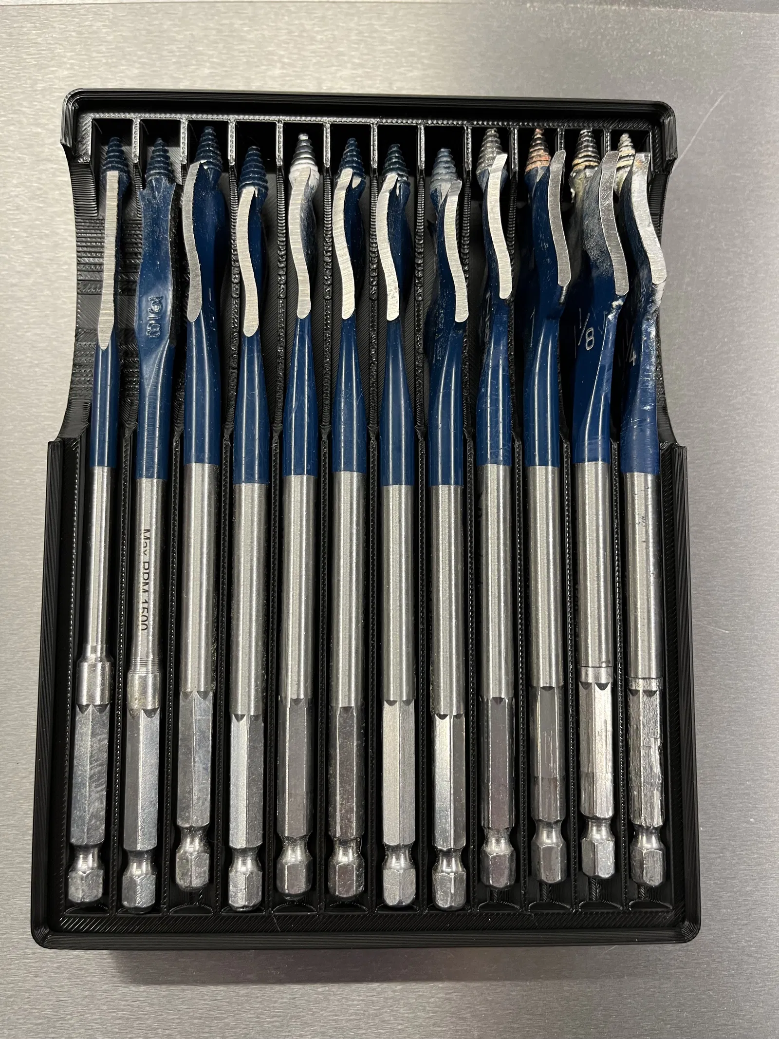 Hộp đựng mũi khoan Spade theo tiêu chuẩn Gridfinity. Giúp bạn sắp xếp gọn gàng các loại mũi khoan Spade, dễ dàng tìm kiếm và sử dụng.