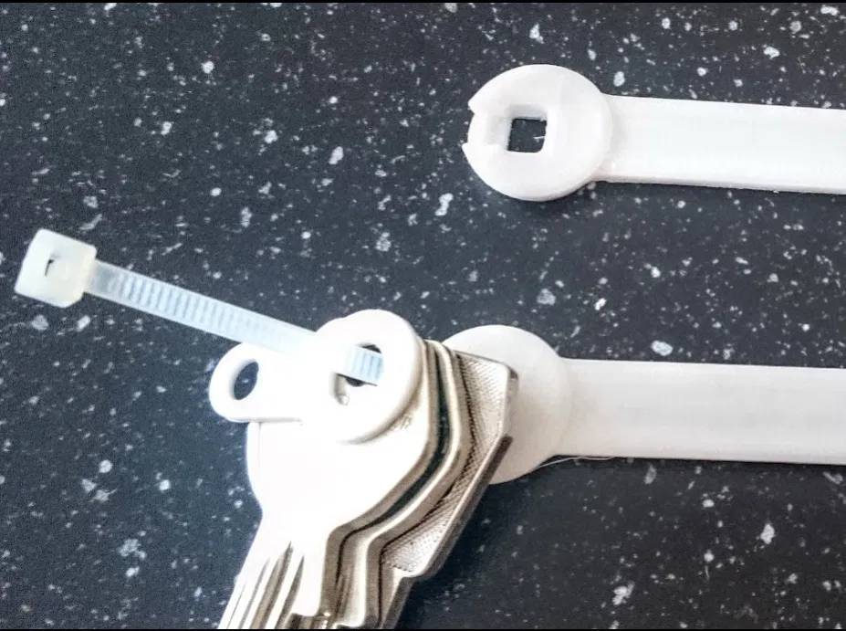 Thay vào đó, chiếc móc chìa khóa này tích hợp một dây rút nylon tiêu chuẩn rộng 4 mm, vì vậy bạn có thể giữ bao nhiêu chìa khóa tùy thích. Chỉ cần in ra và rút nó lại!