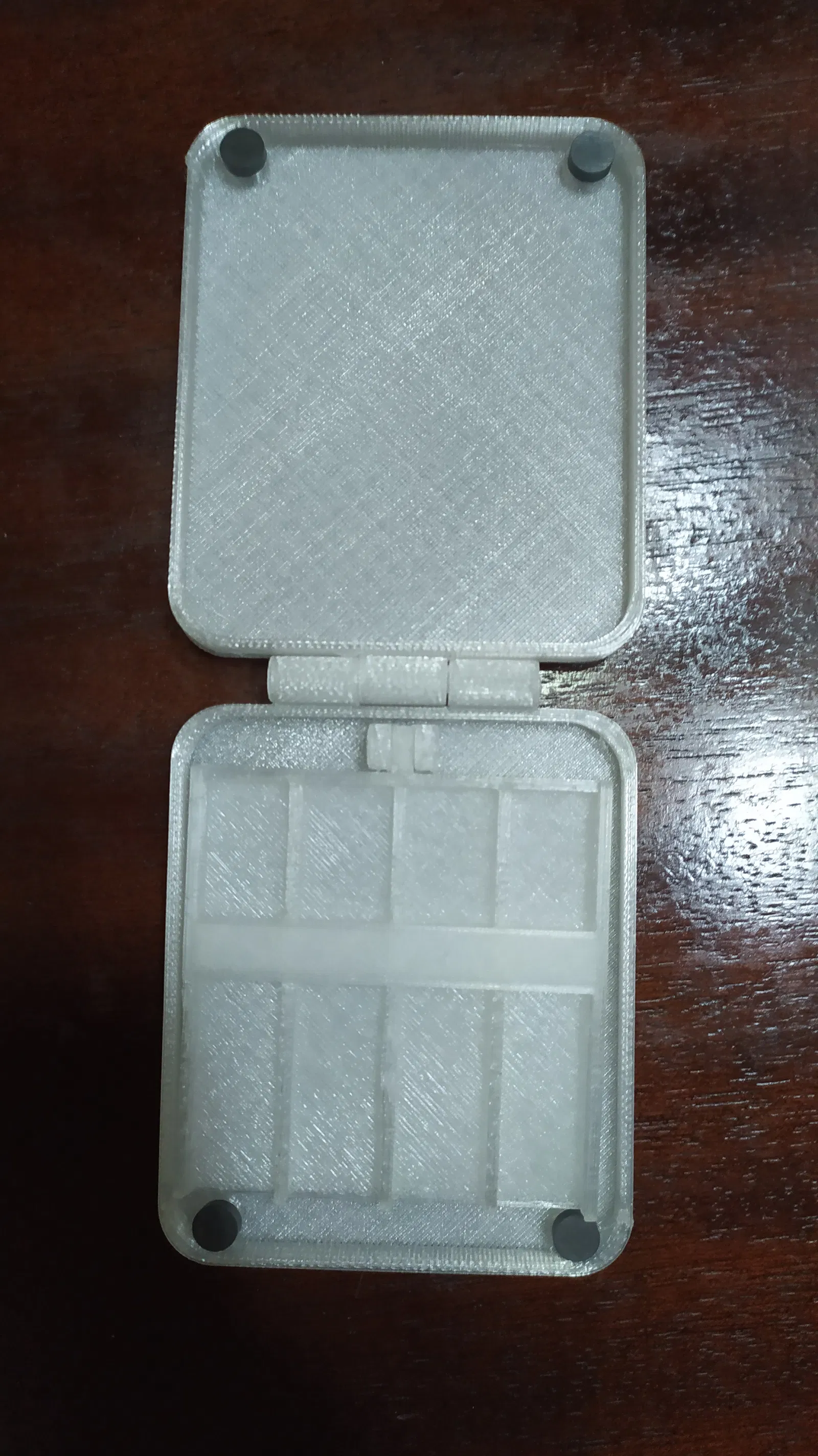 Vật liệu bổ sung: cần 4 nam châm tròn nhỏ để làm cơ chế khóa, 2 chốt bản lề (ví dụ: bu lông hoặc chốt in 3D).