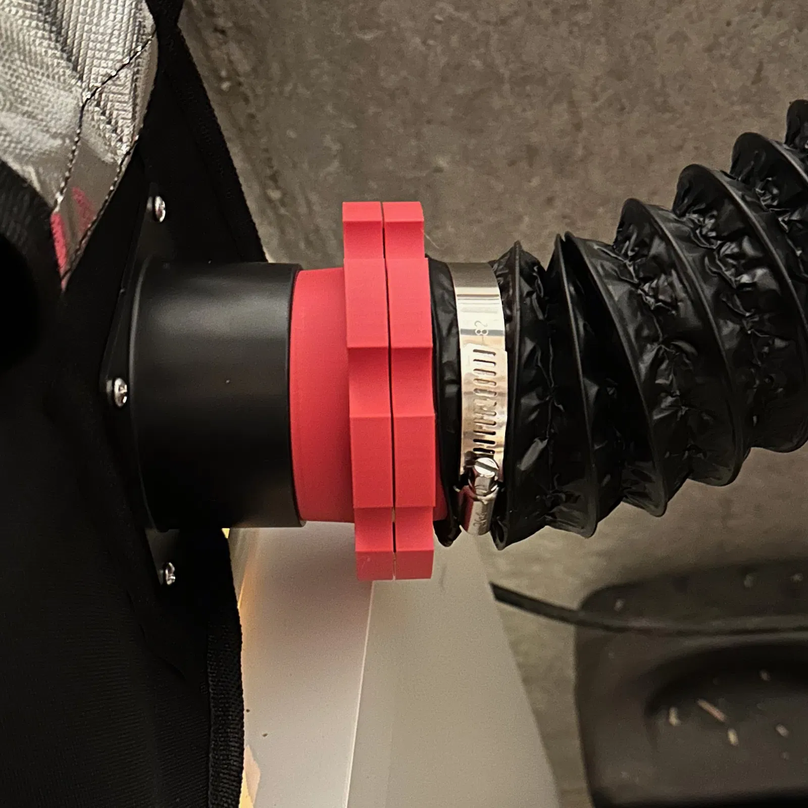Tôi muốn có một khớp nối ống gió ngắt kết nối nhanh cho lồng máy khắc laser của mình. Nghĩ là lúc này tốt để học OpenSCAD để làm ra cái này. Bao gồm cả file SCAD nếu bạn muốn tự chỉnh sửa. OpenSCAD có miễn phí tại https://openscad.org/.
