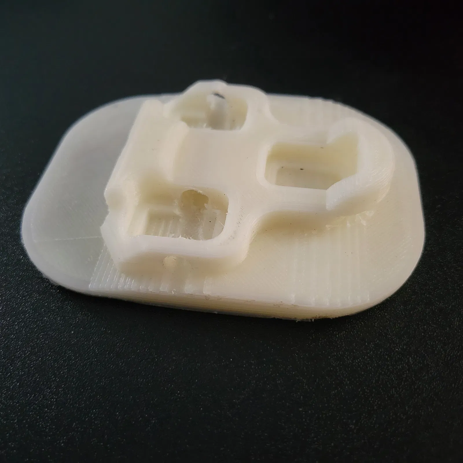 Cục adapter phẳng cho pedal Garmin Vector 3 (kiểu Look/Keo), có lỗ vặn tuốc nơ vít để dễ dàng tháo lắp. In phẳng bằng PLA, chỉ cần support dưới phần mũi cleat (lỗ không cần support).