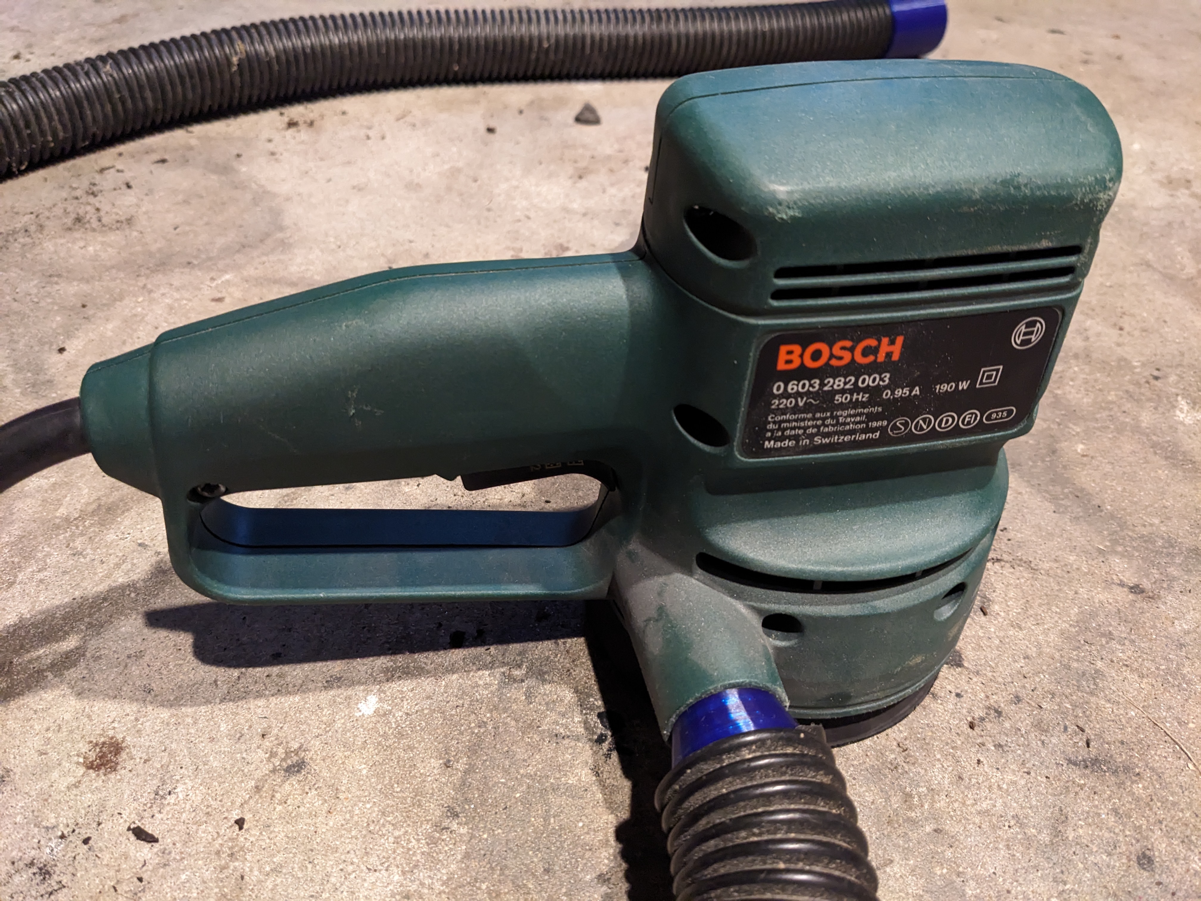 Cái bộ chuyển đổi này để nối cái máy chà nhám quỹ đạo Bosch PEX 115 cũ mà tui được cho với cái máy hút bụi xưởng cũng được cho luôn.